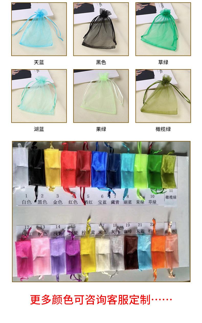 Bolsa de Malla de Color Puro Personalizada Regalo Almacenamiento de Joyas Bolsa de Dulces para Boda Cordón Bolsa con Cordón Logotipo Impreso Bolsa de Organza
