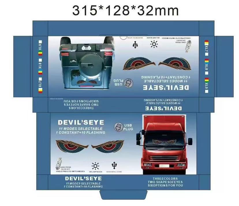 XL Ojo de Diablo Dinámico LED Camión Coche Vidrio Delantero y Trasero Luz Decorativa USB