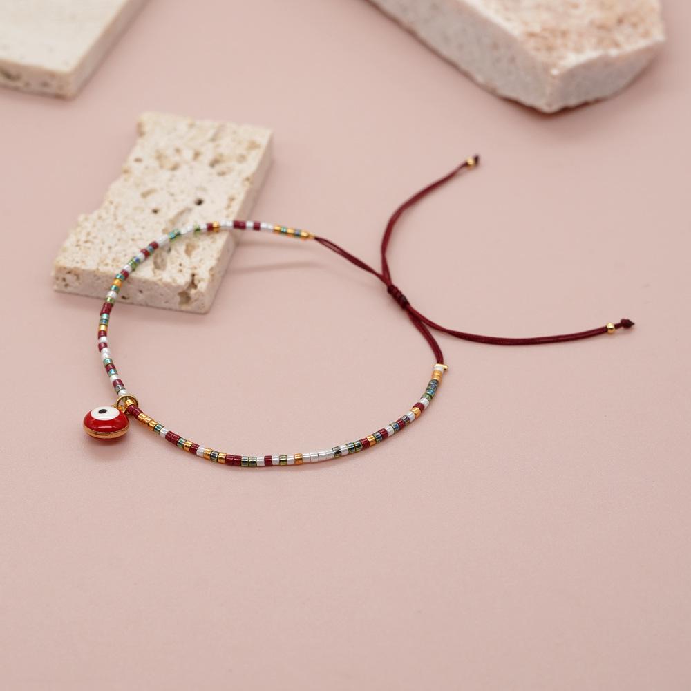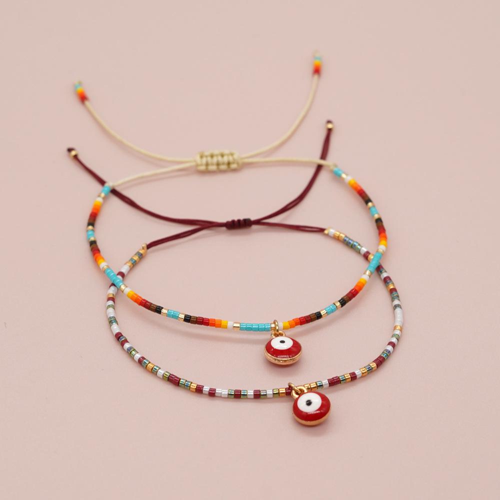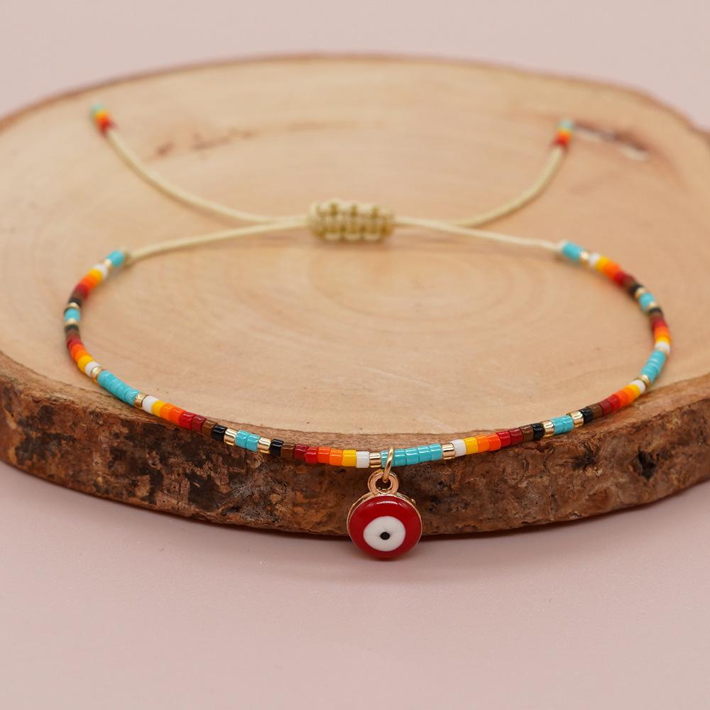 Miyuki Cuentas de Arroz Pulsera Pequeña de Arcoíris con Cuentas para Niñas Estilo Étnico Nicho Ins Ojo de Diablo Joyería de Mano Europea y Americana