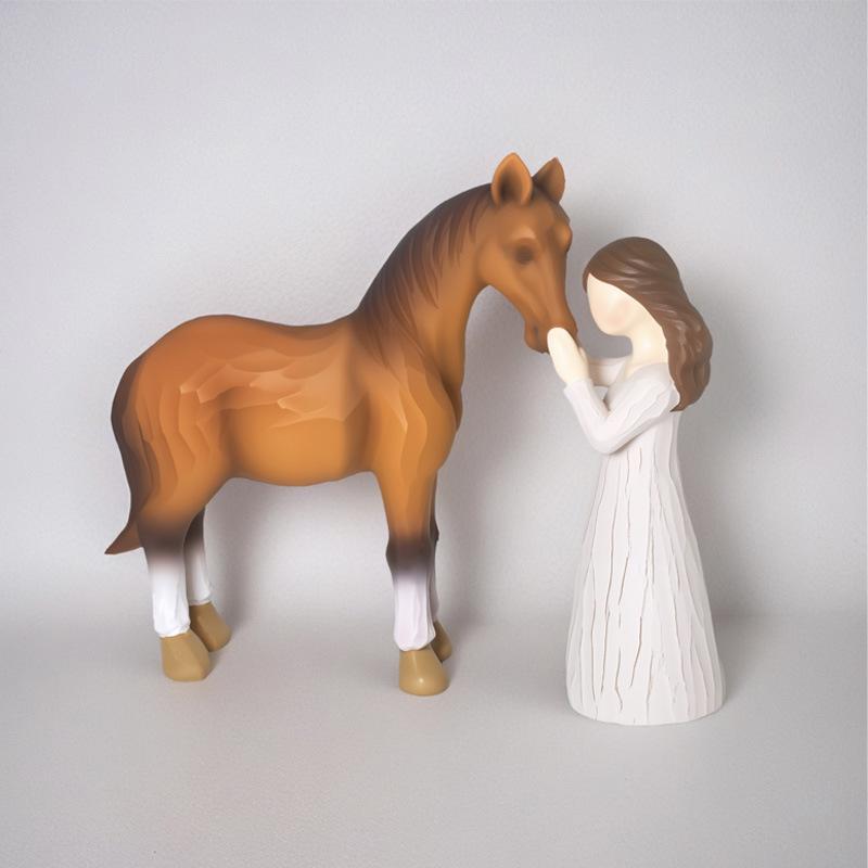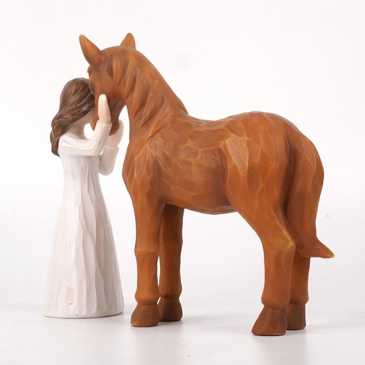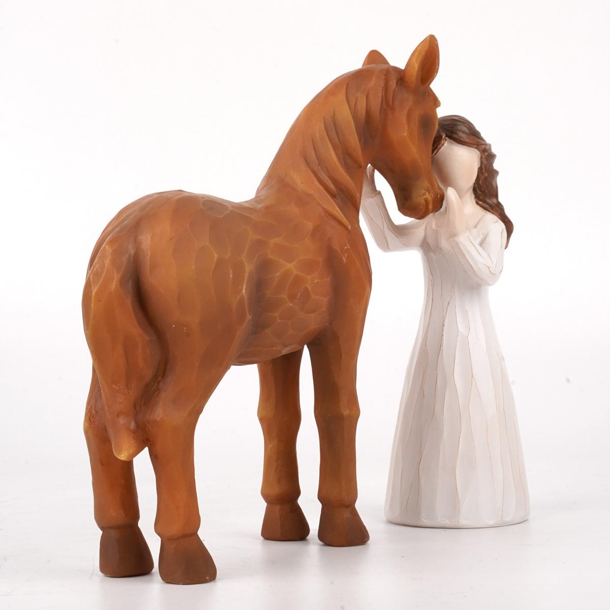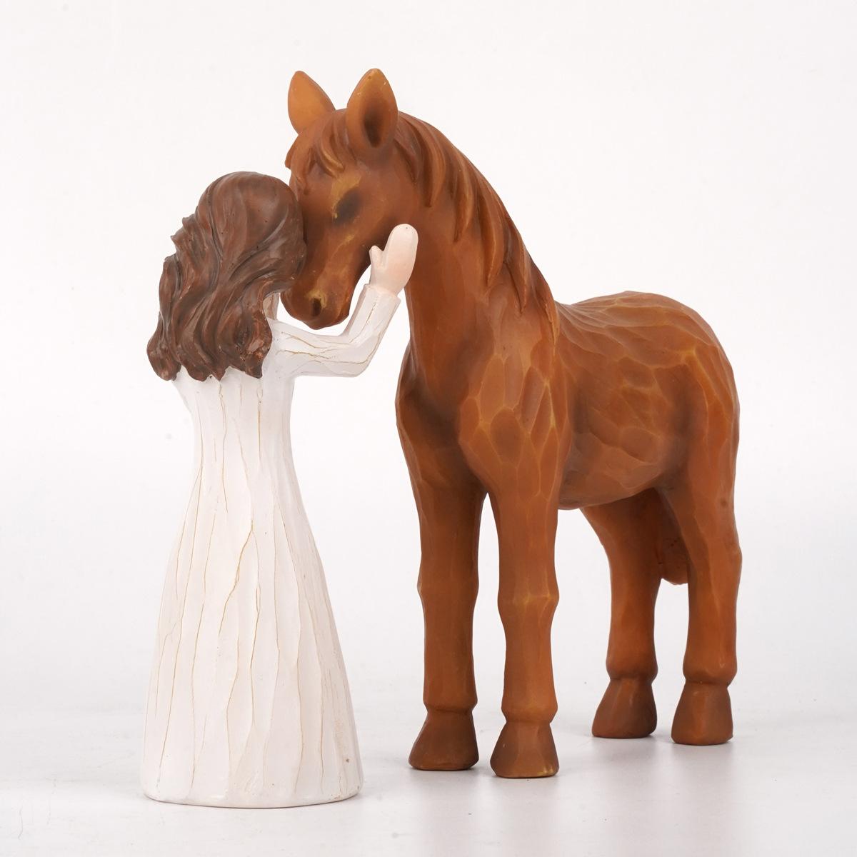 Niña Transfronteriza con Estatua de Jinete Adornos Serie Abrazo Animal Artesanías de Resina Decoración del Hogar Regalos