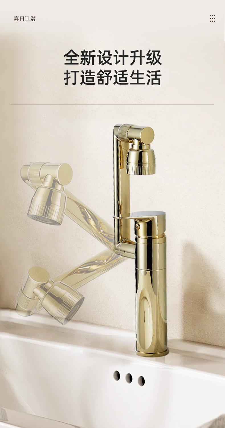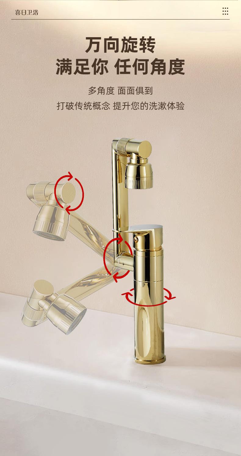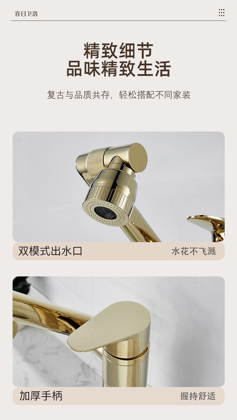 Grifo Universal Dorado Lavabo Todo Cobre Gato de la Suerte Frío y Caliente Lavabo Gabinete de Baño Grifo