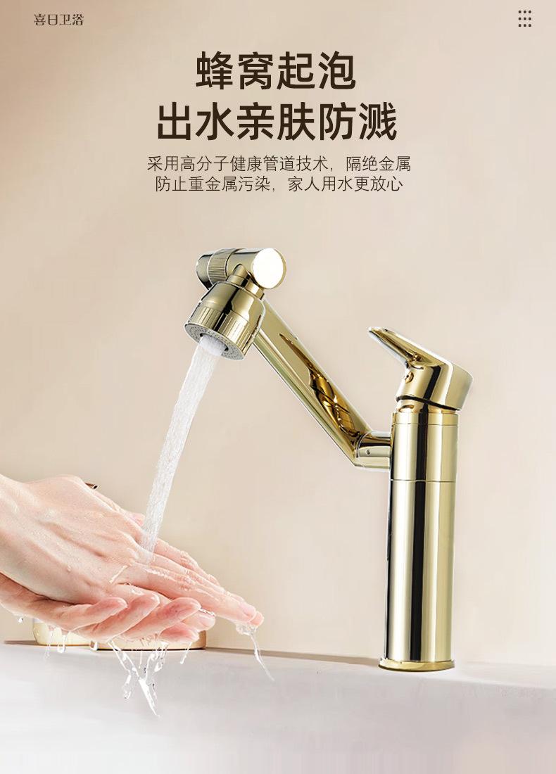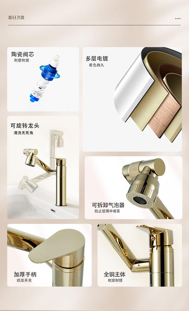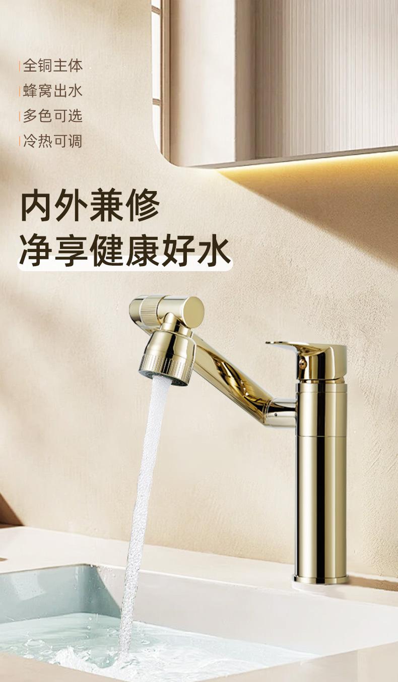 Grifo Universal Dorado Lavabo Todo Cobre Gato de la Suerte Frío y Caliente Lavabo Gabinete de Baño Grifo