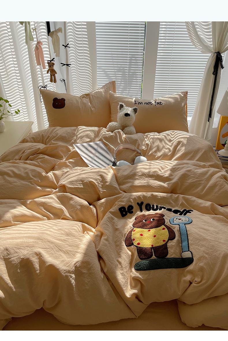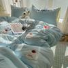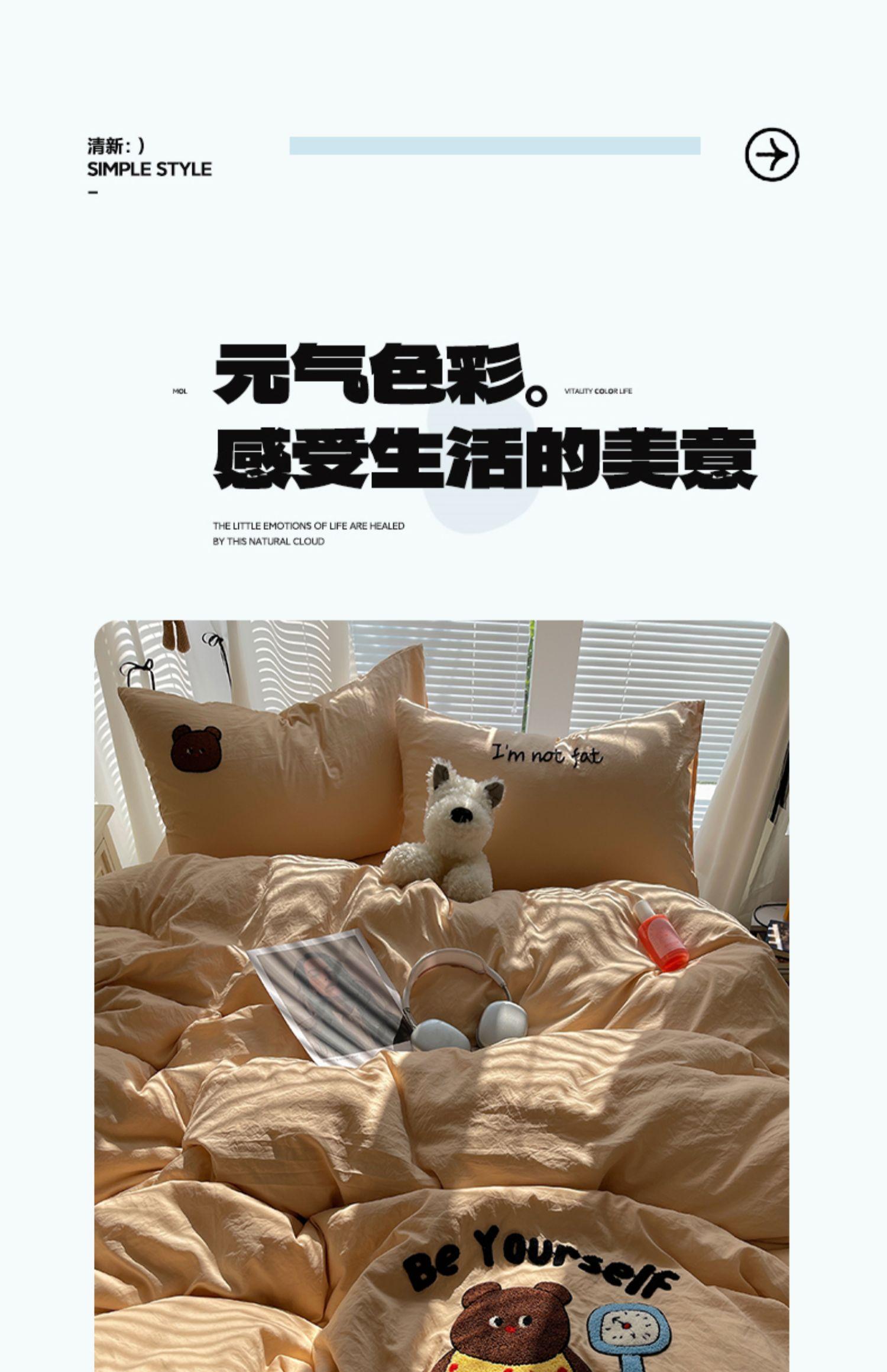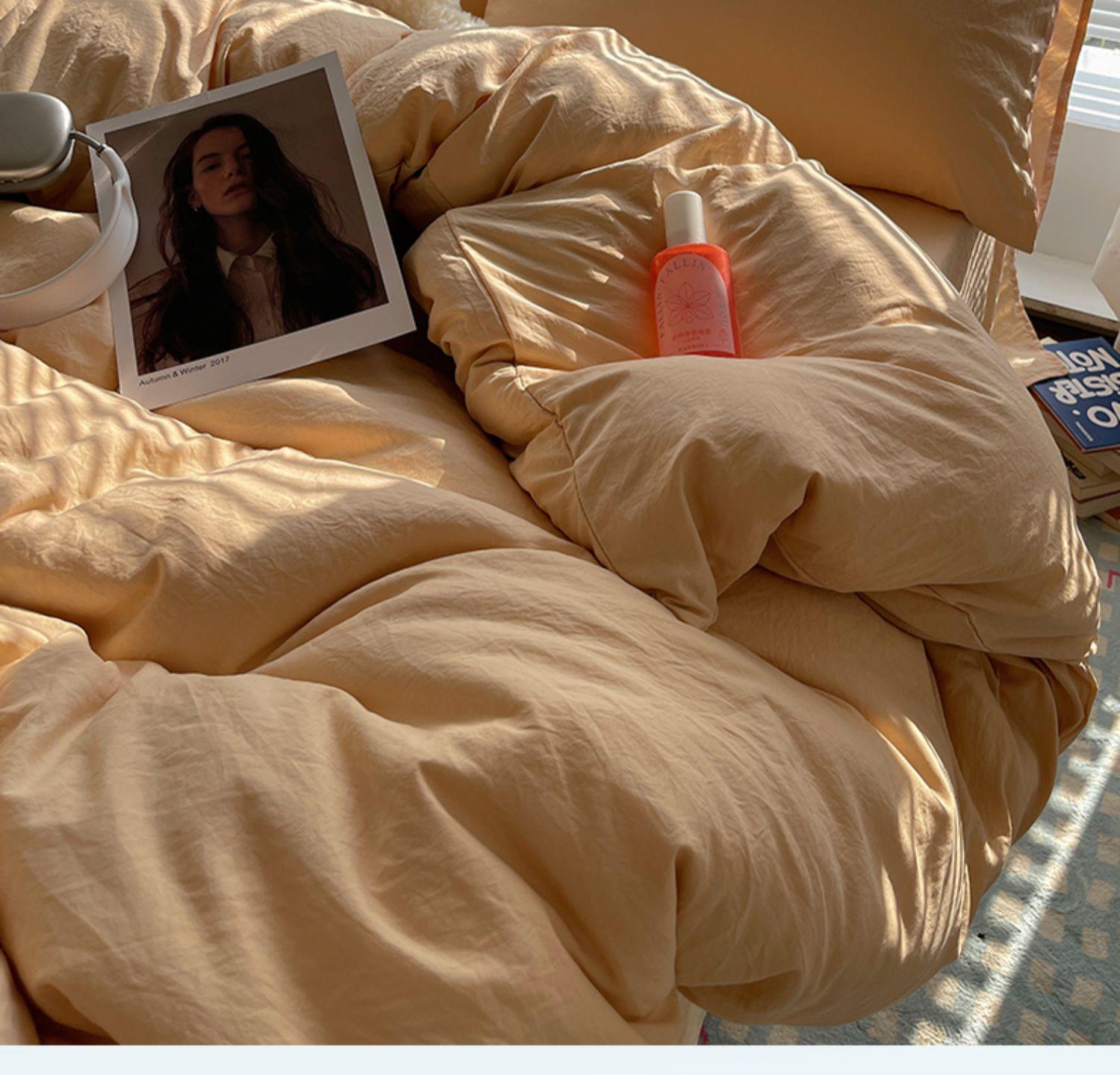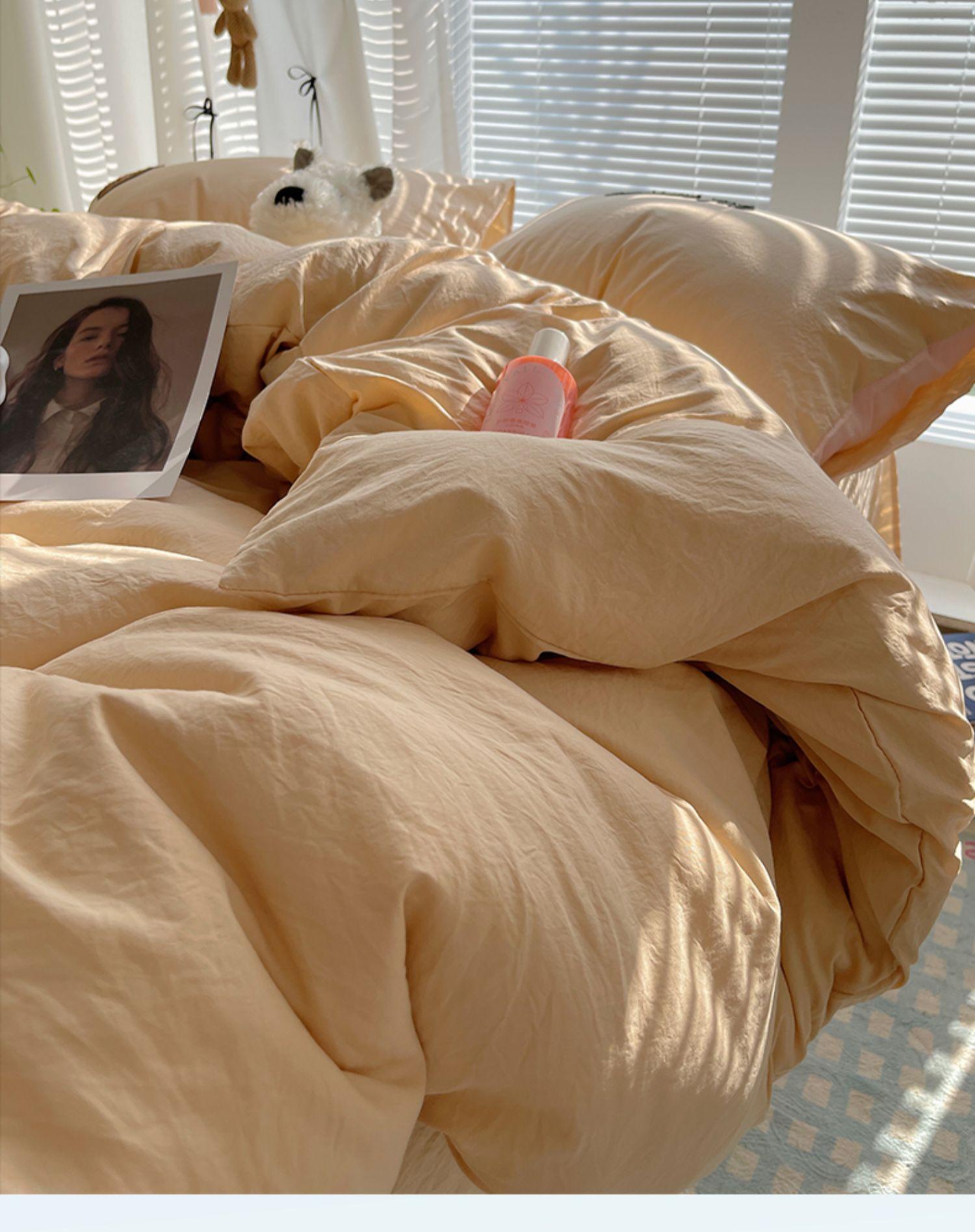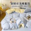 Juego de cama de cuatro piezas de algodón lavado 2024 Nuevo Verano Hogar Cama Sábanas, Funda de edredón, Sábanas ajustables, Juego de cama de tres piezas