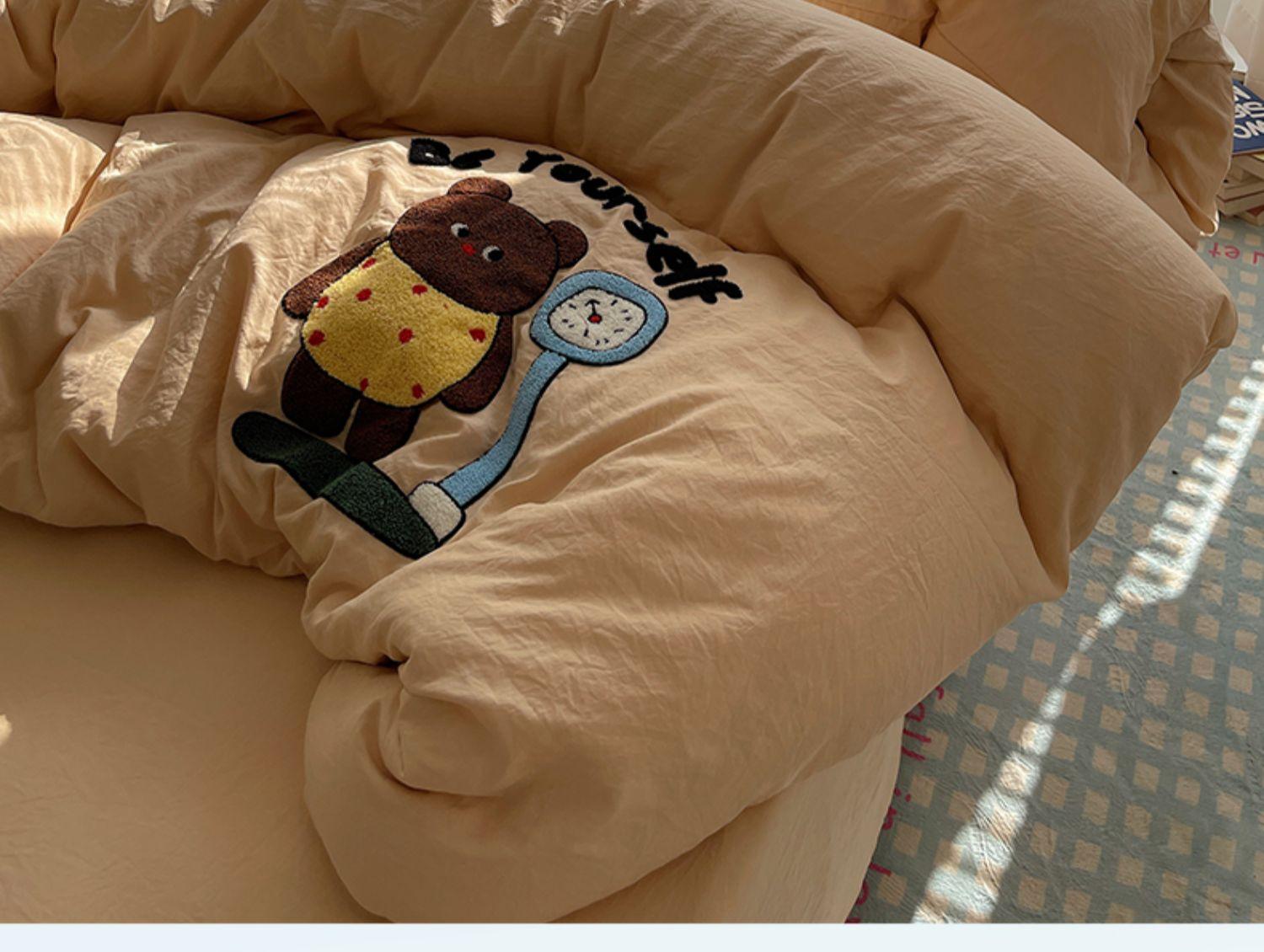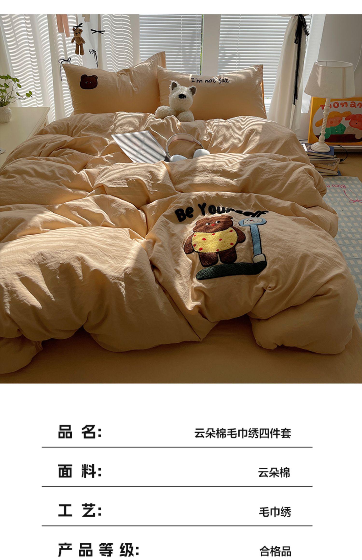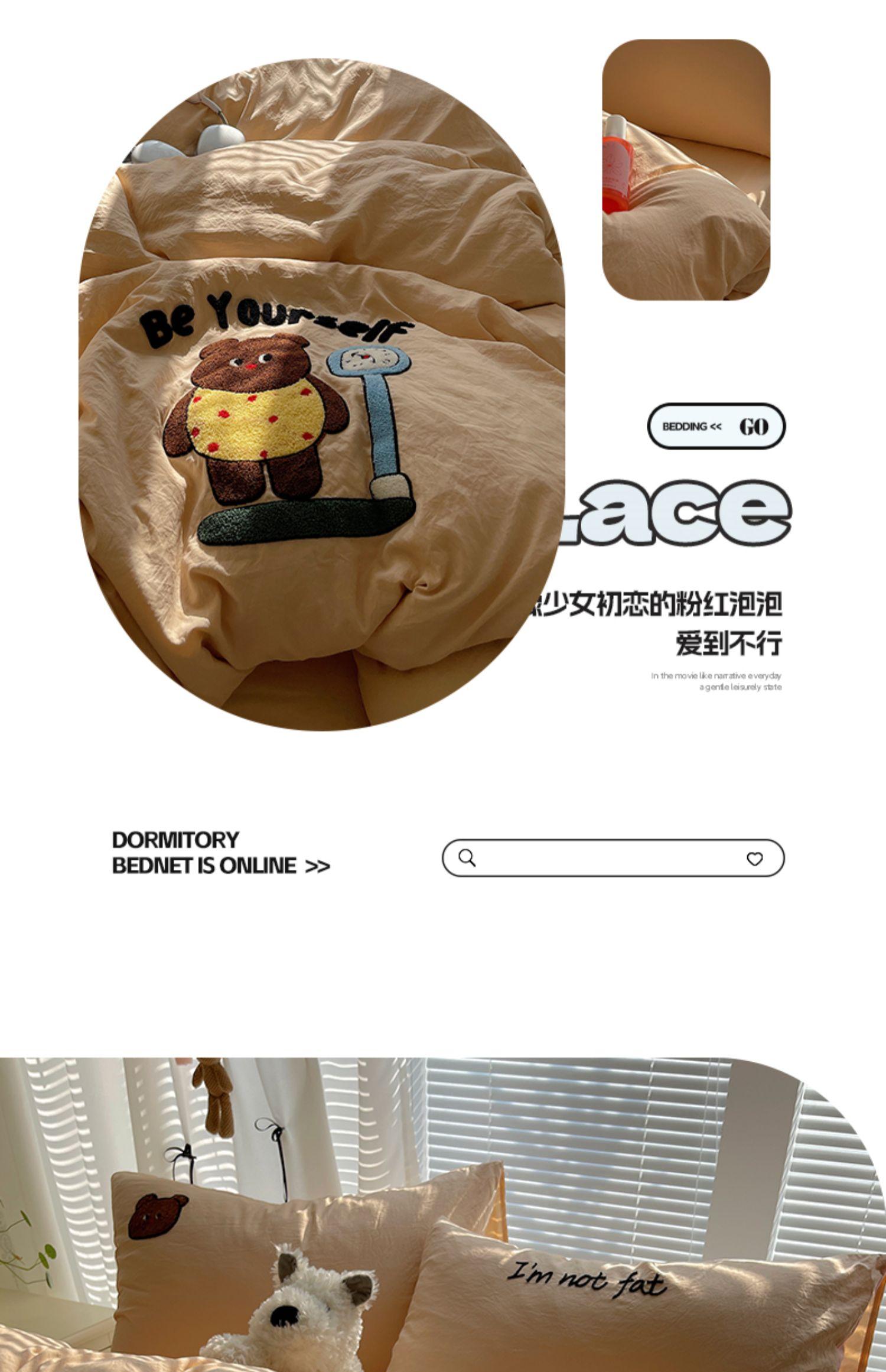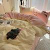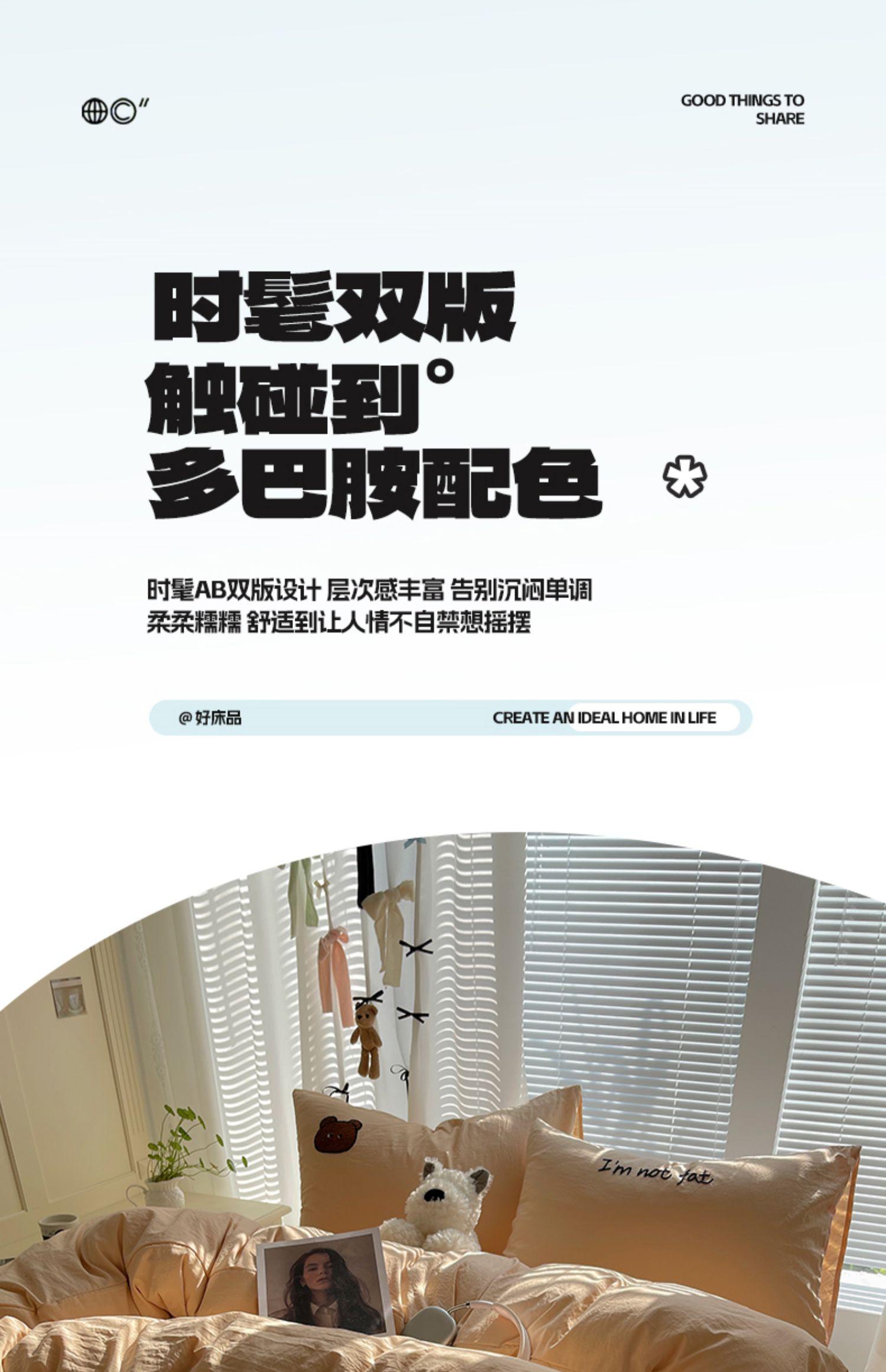 Juego de cama de cuatro piezas de algodón lavado 2024 Nuevo Verano Hogar Cama Sábanas, Funda de edredón, Sábanas ajustables, Juego de cama de tres piezas