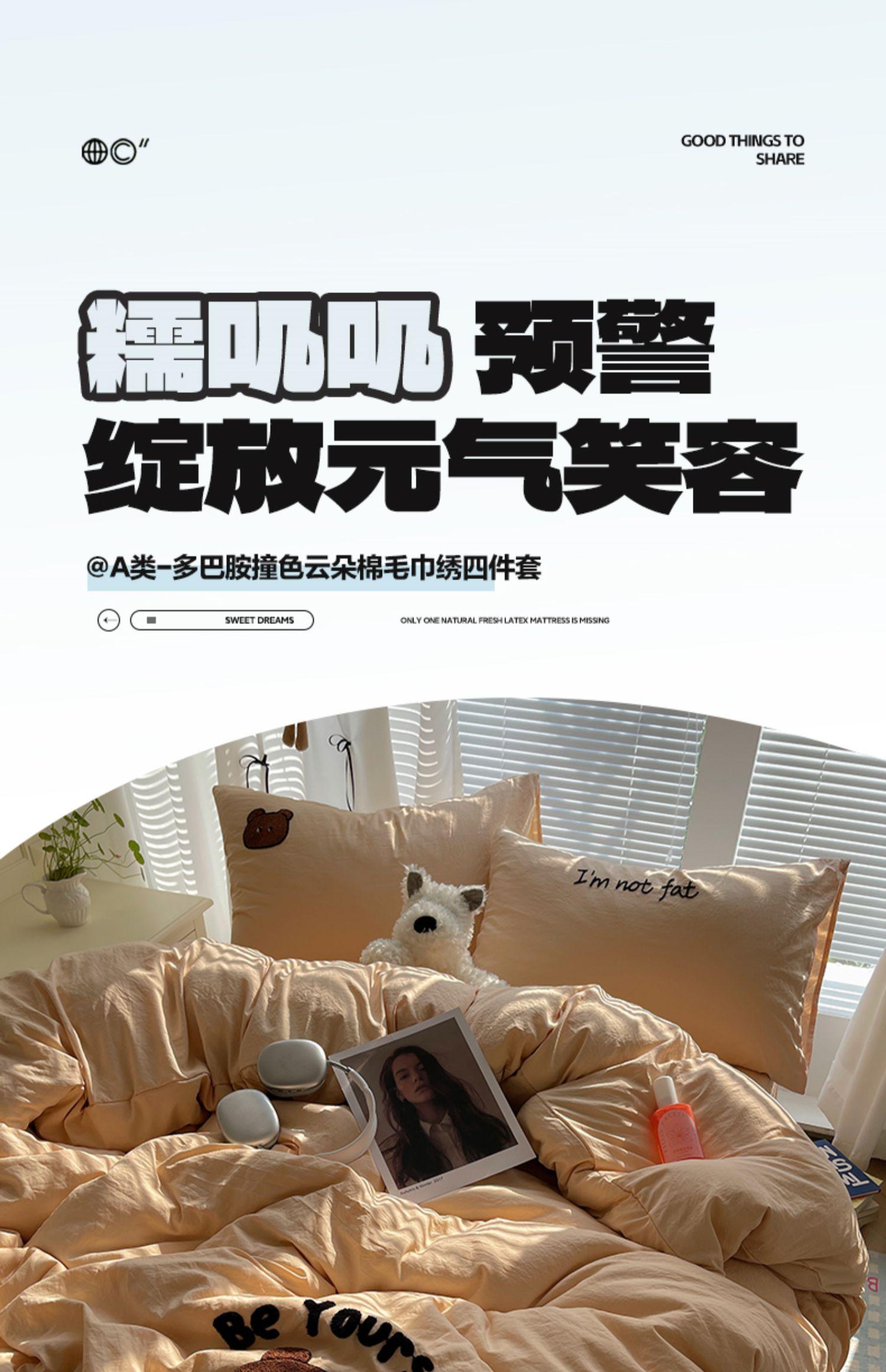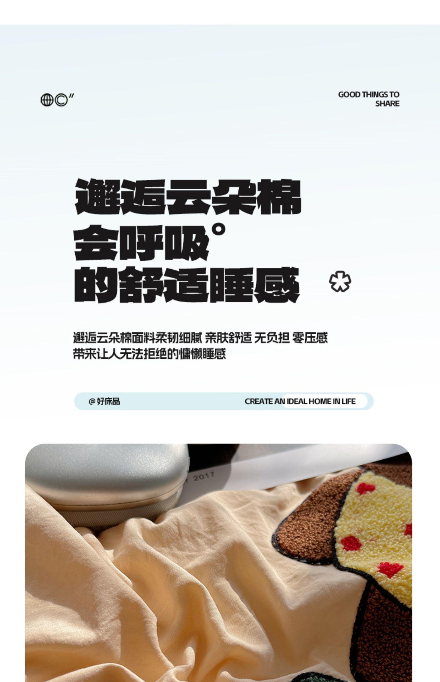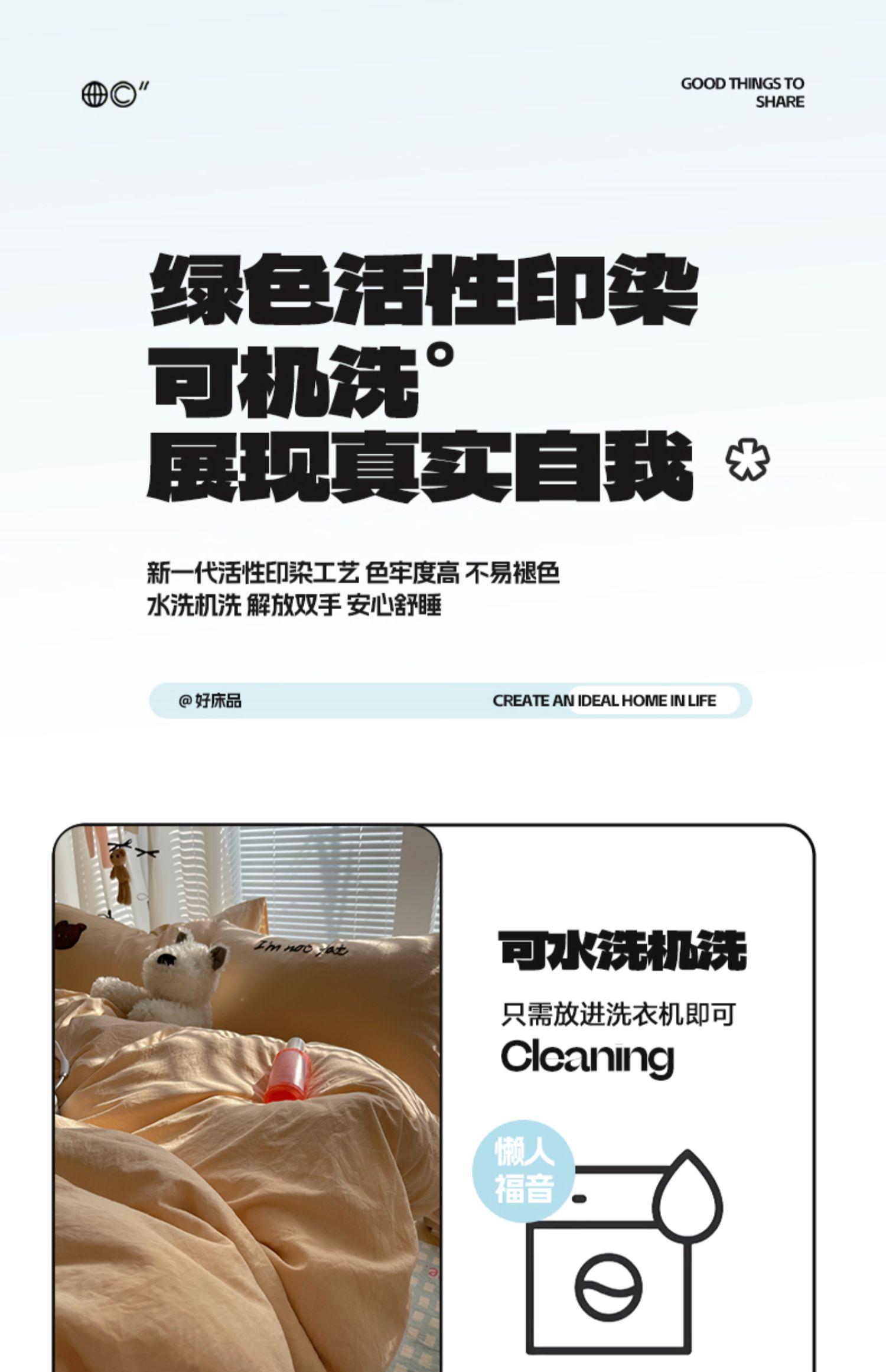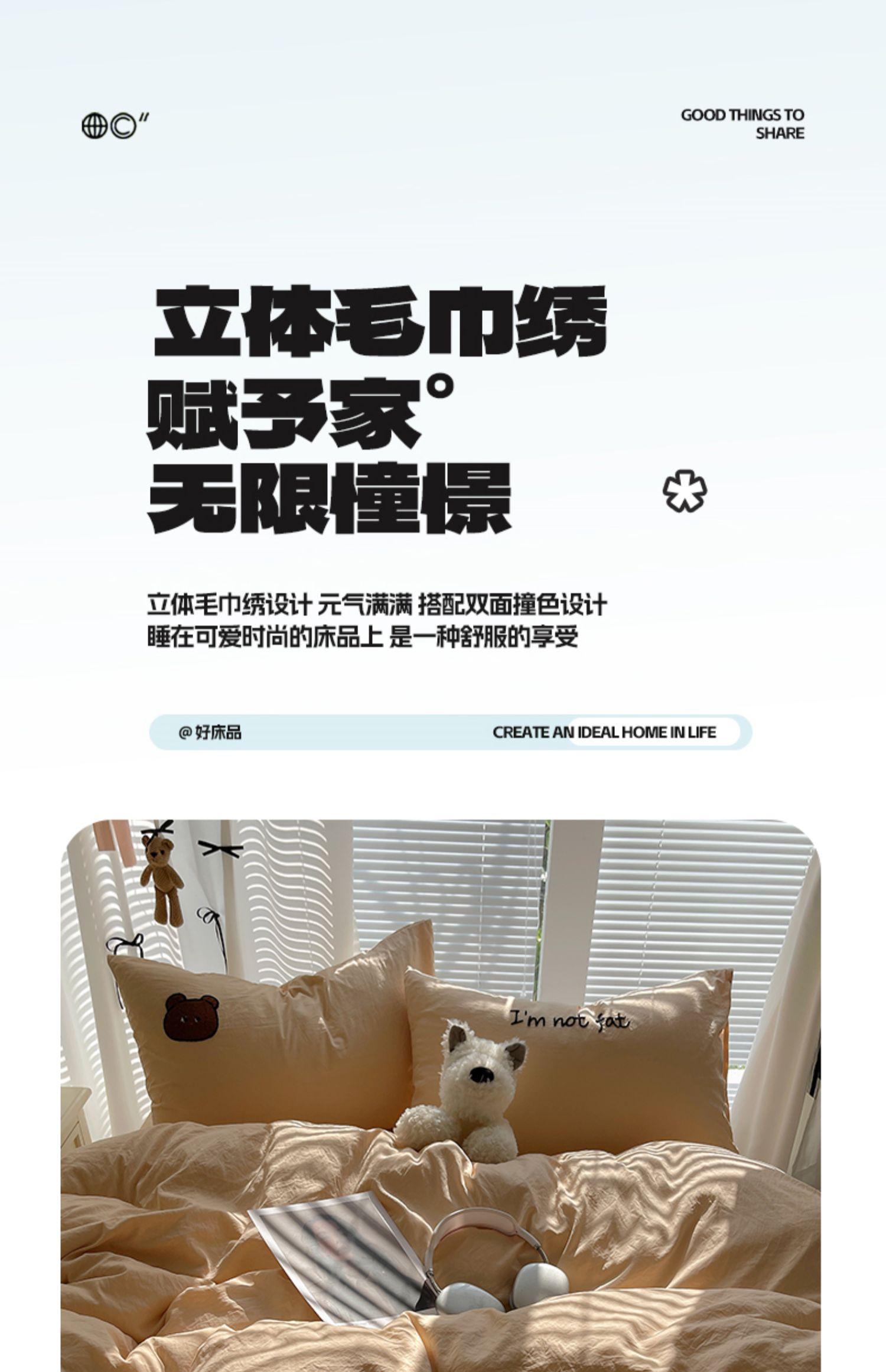 Juego de cama de cuatro piezas de algodón lavado 2024 Nuevo Verano Hogar Cama Sábanas, Funda de edredón, Sábanas ajustables, Juego de cama de tres piezas
