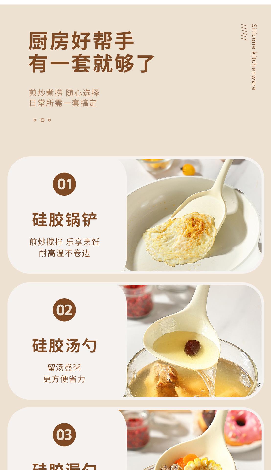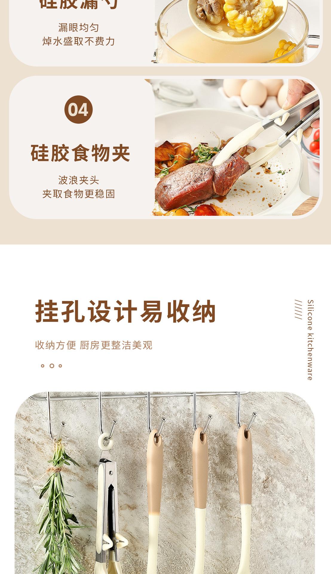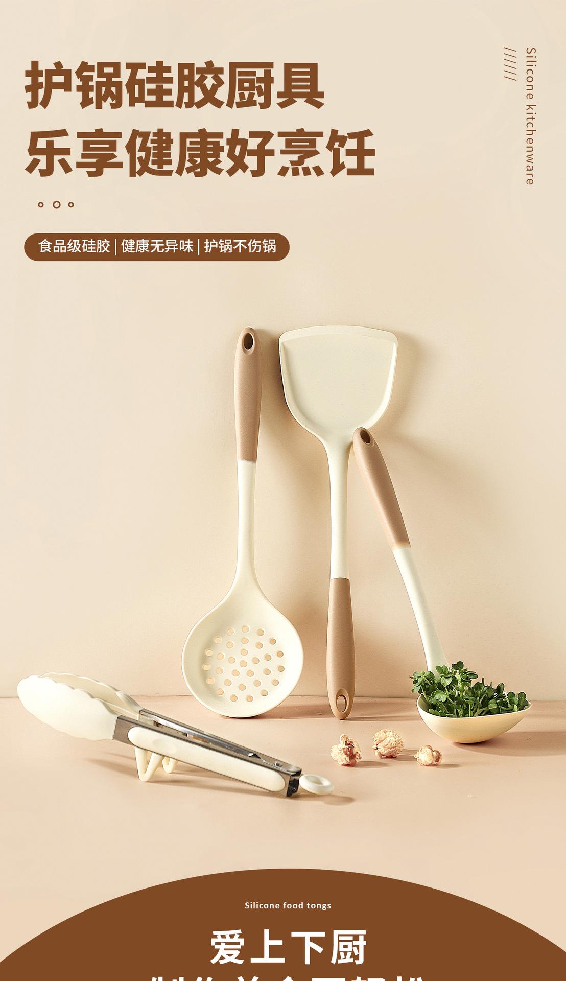 Juego de 4 piezas de cuchara pala de silicona para cocinar de nuevo estilo Cuchara pala de silicona Pinza para alimentos Cuchara para sopa Sartén antiadherente Juego de utensilios de cocina para el hogar