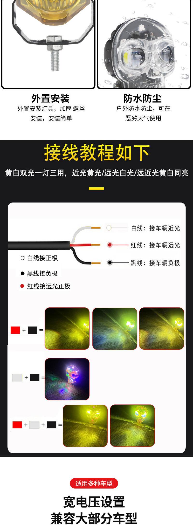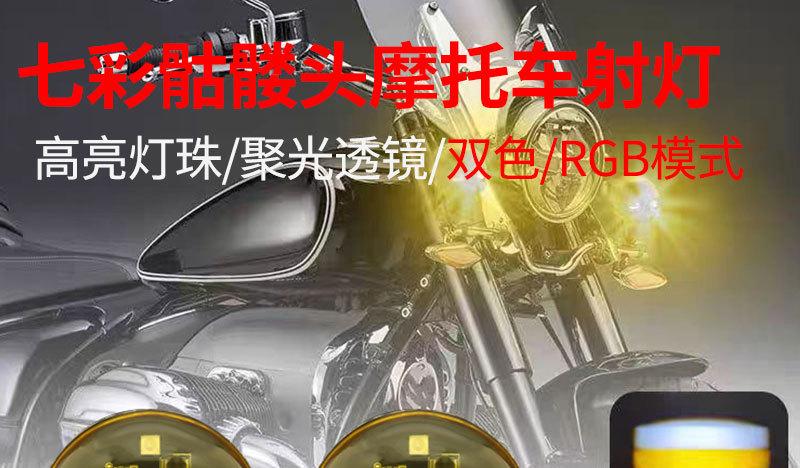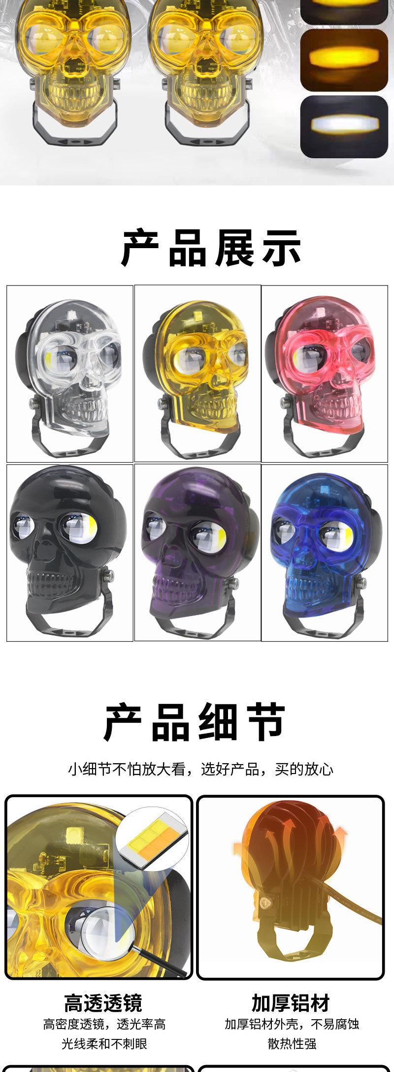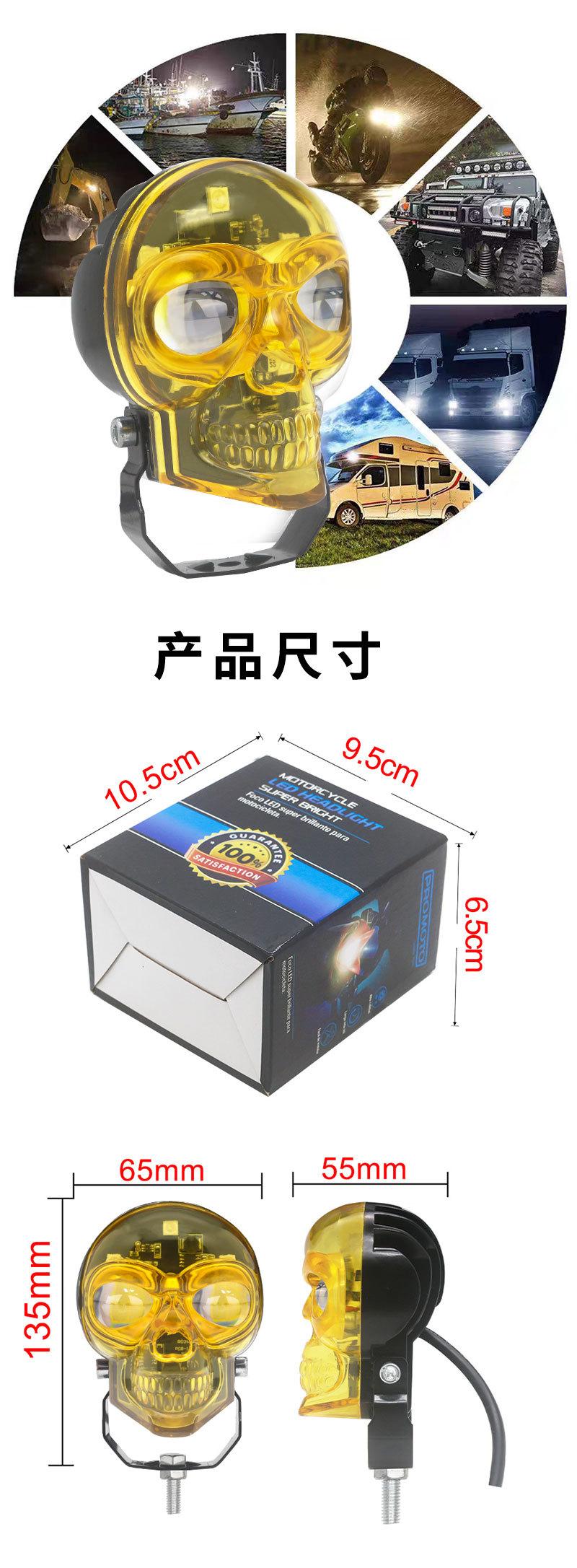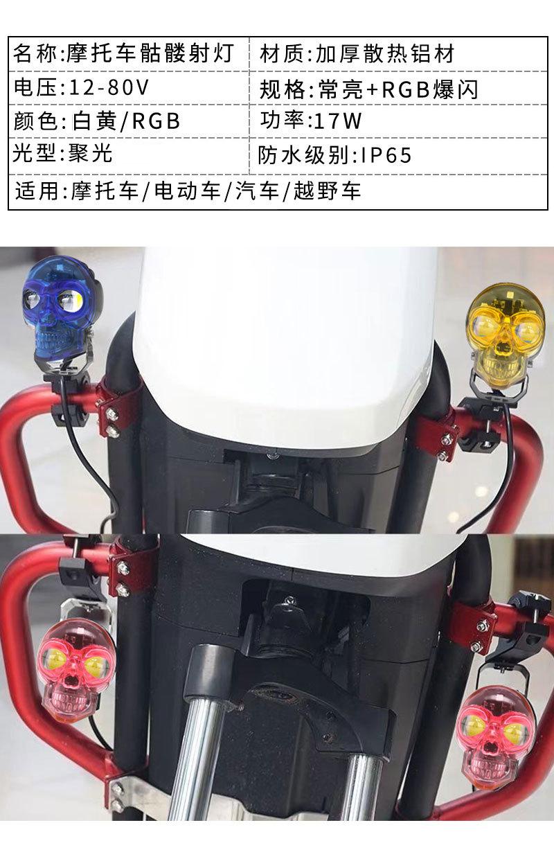 Faro LED de Motocicleta Calavera Negra Transfronterizo, Faro de Luz Alta y Baja, Faro Externo Modificado para Vehículo Eléctrico