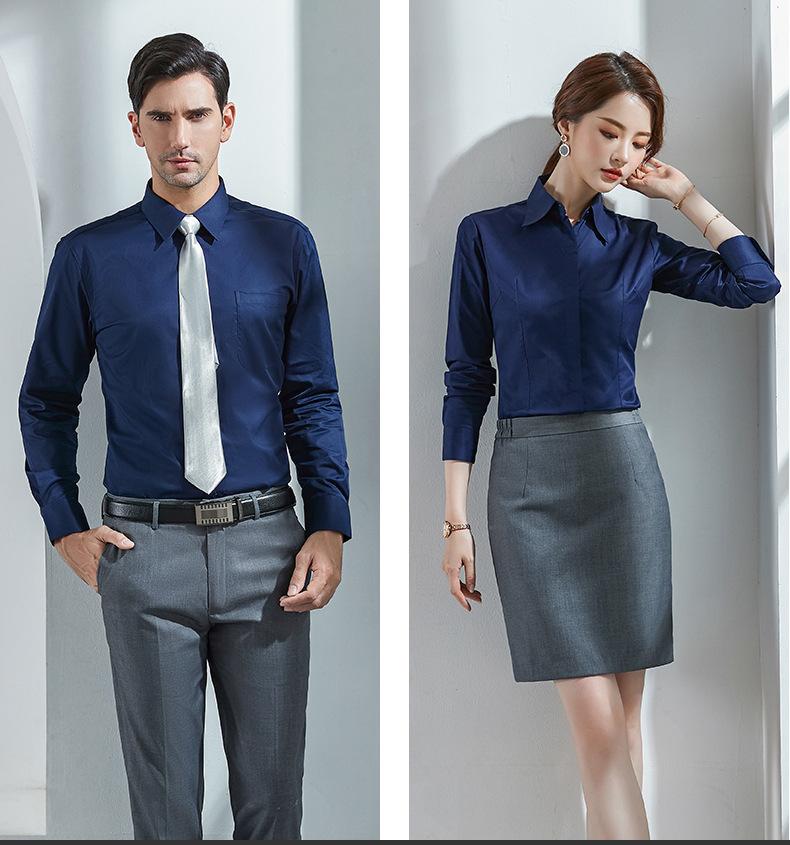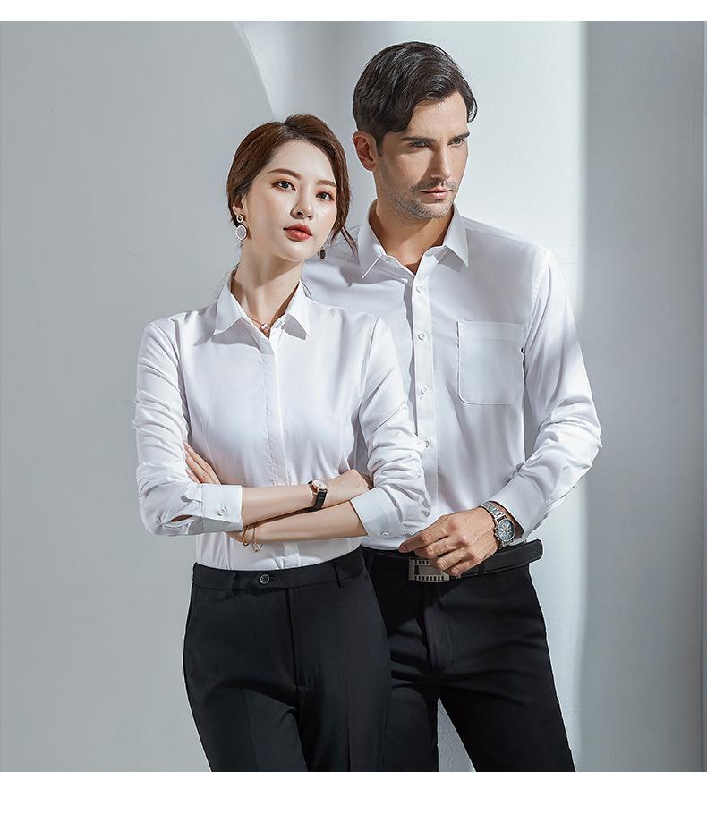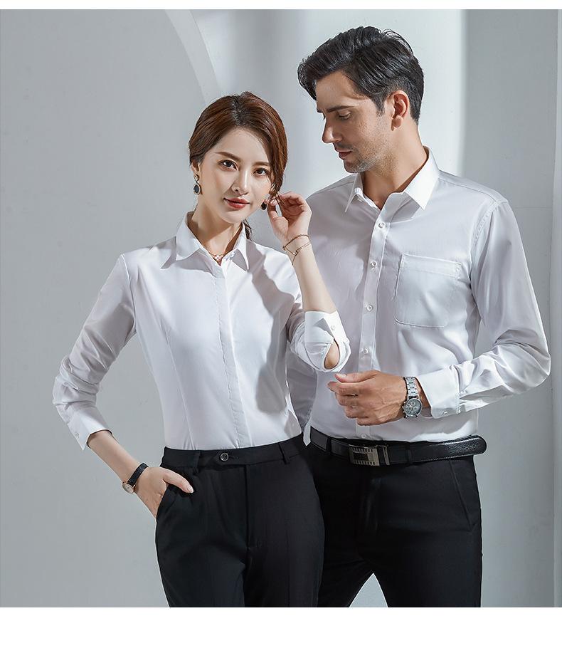 Camisa larga de negocios primavera formal camisa de algodón mercerizado para hombre y mujer igual cuello blanco ropa de trabajo pedido logo bordado