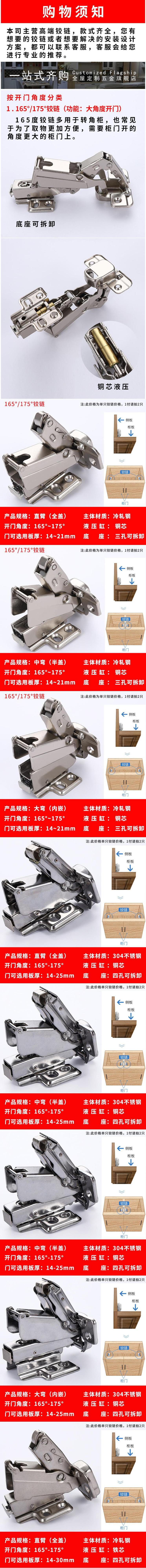 165°/175°Cold rolled steel hinge (straight arm), 165°/175°Cold-rolled steel hinge (middle bend), 165°/175°Cold...