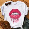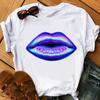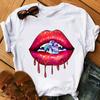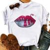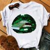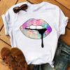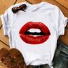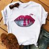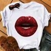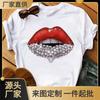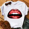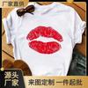 2025 Nuevo Comercio Exterior Sexy Labios Patrón Estampado Top Casual para Mujer Camiseta de Manga Corta Camiseta Base