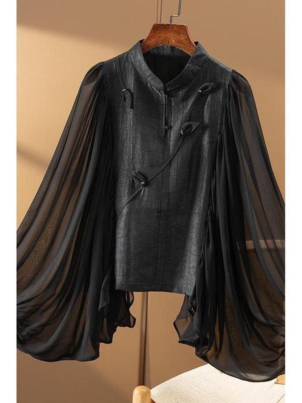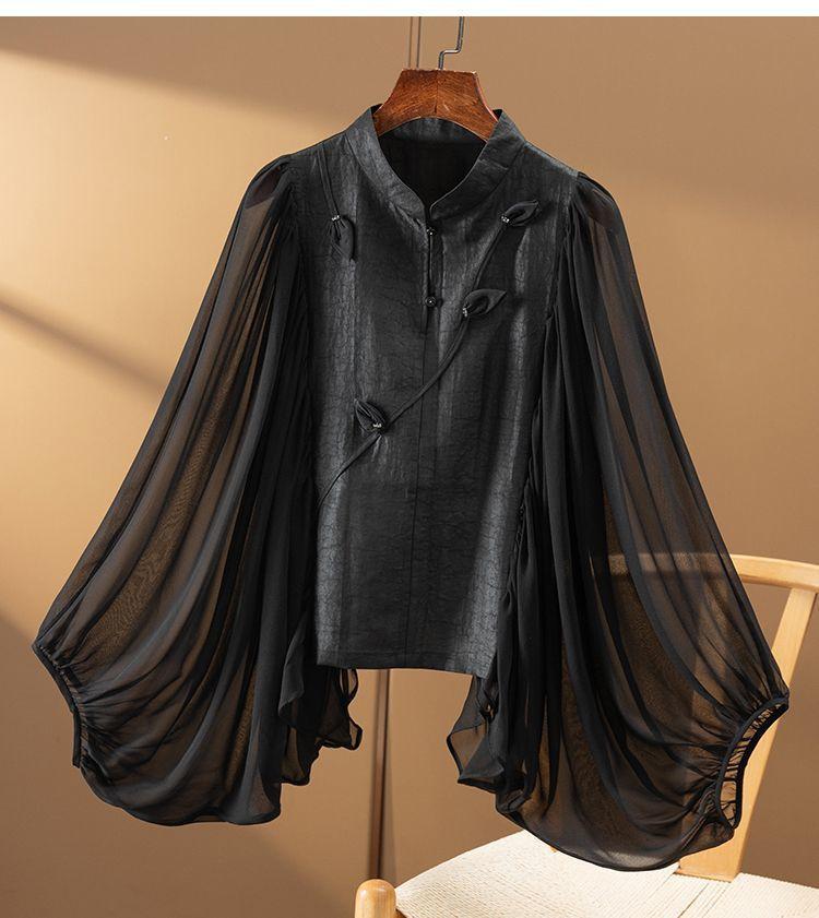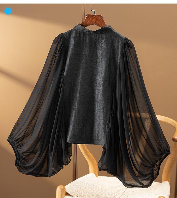 Camisa de Mujer Camisa Primavera y Otoño Verano Camisa Pequeña Europea 2025 Nuevo Estilo Top Manga Larga Nuevo Manga Murciélago China Base