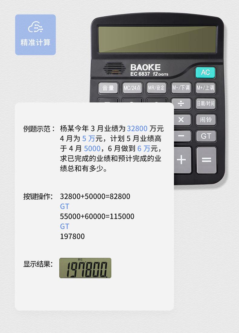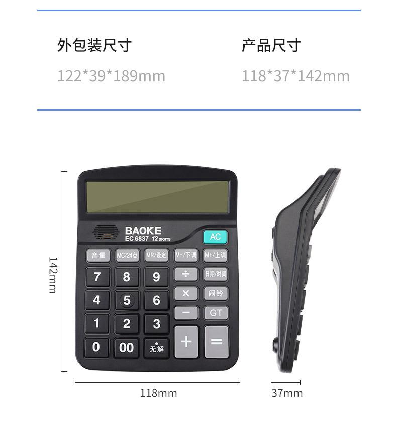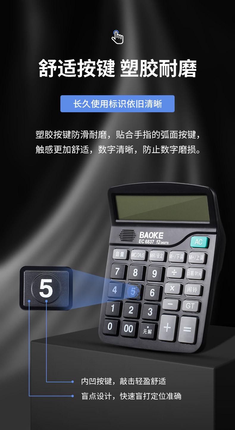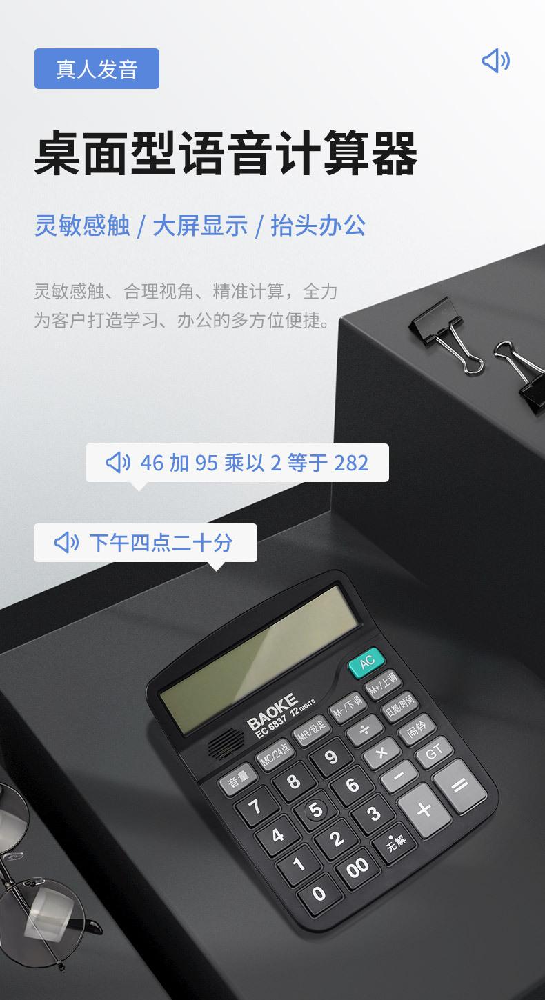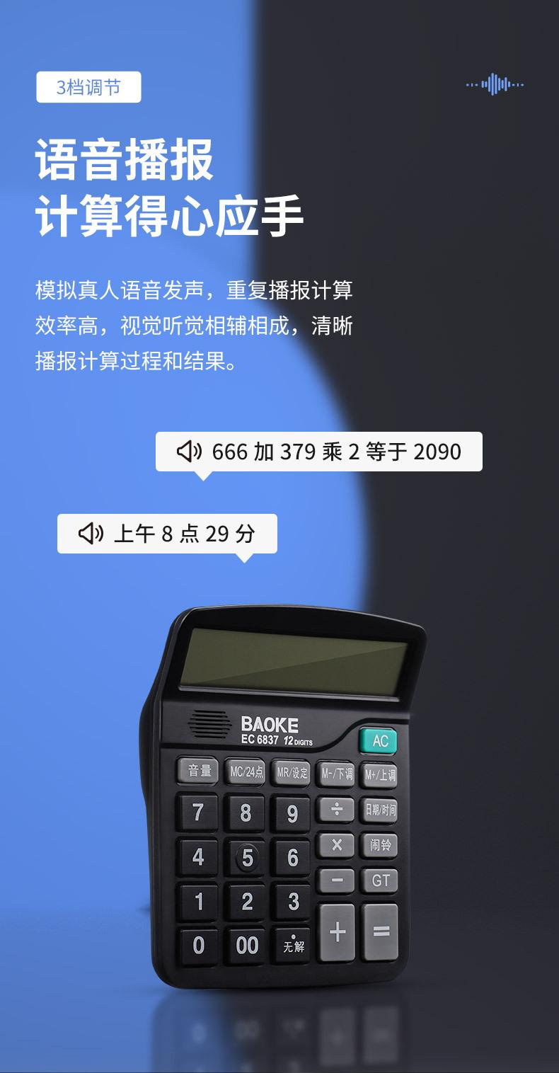 Calculadora de Voz Baoke EC6837 Calculadora de Pantalla Grande para Oficina Estudiantes Calculadora de Escritorio de 12 dígitos