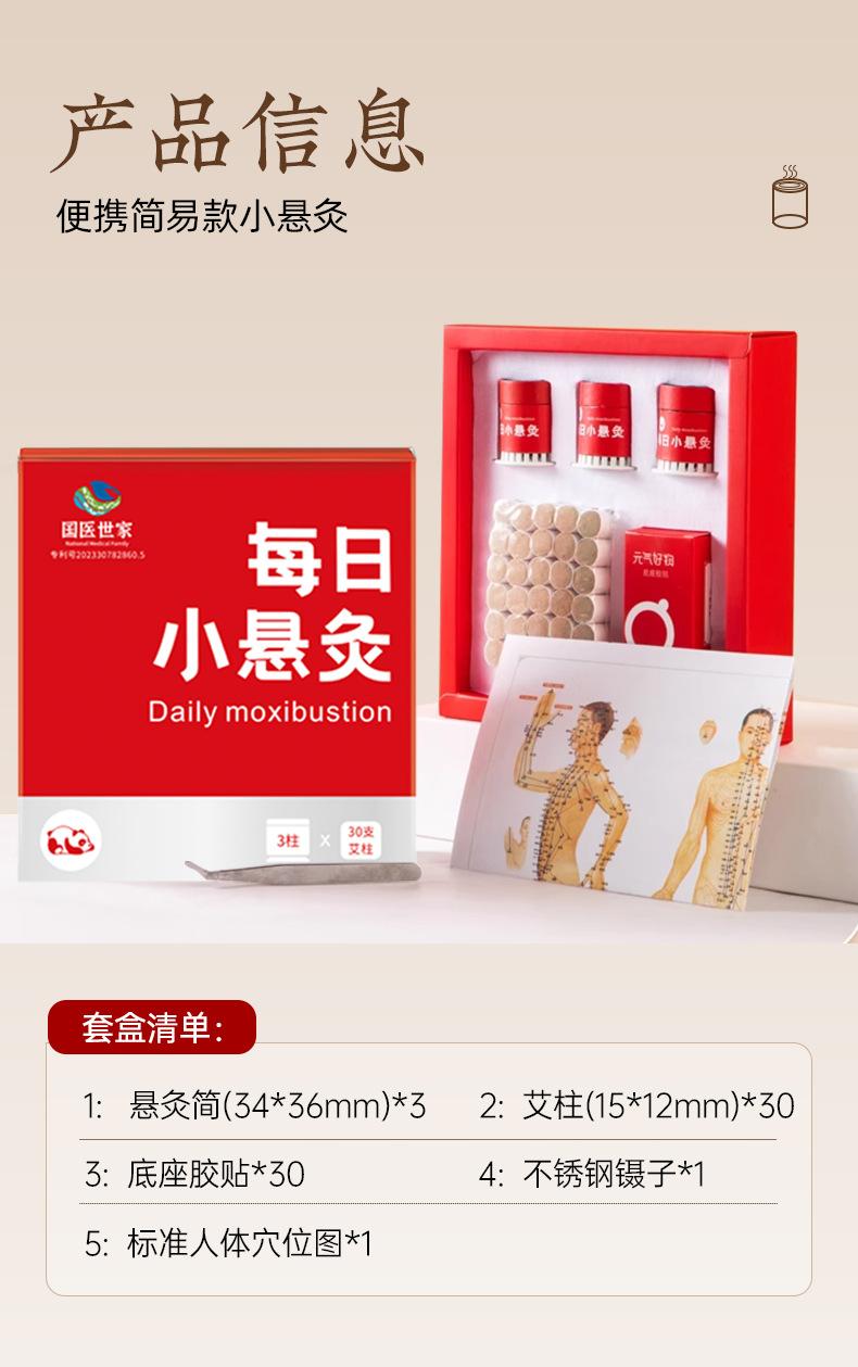3 hanging moxibustion tubes + 30 tapes + 30 moxibustion sticks + tweezers + acupoint map
