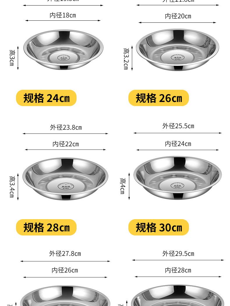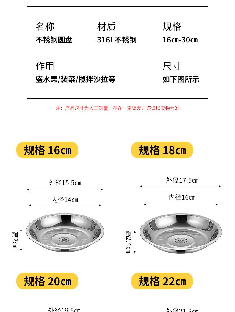 Disco de Acero Inoxidable Grado Alimenticio Engrosado para Hogar Cocina Plato para Platillo Plato para Cena Barbacoa Plato Comercial Envío Gratis
