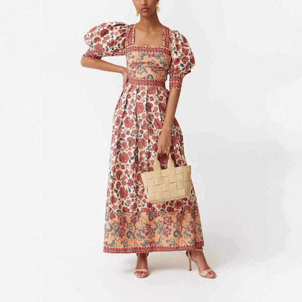 Estación Independiente de Comercio Exterior Amazon 2025 Nuevo Traje de Dos Piezas Casual Europeo y Americano con Tops Estampados y Falda de Cuello Cuadrado