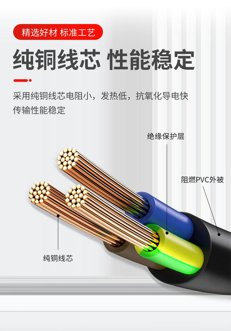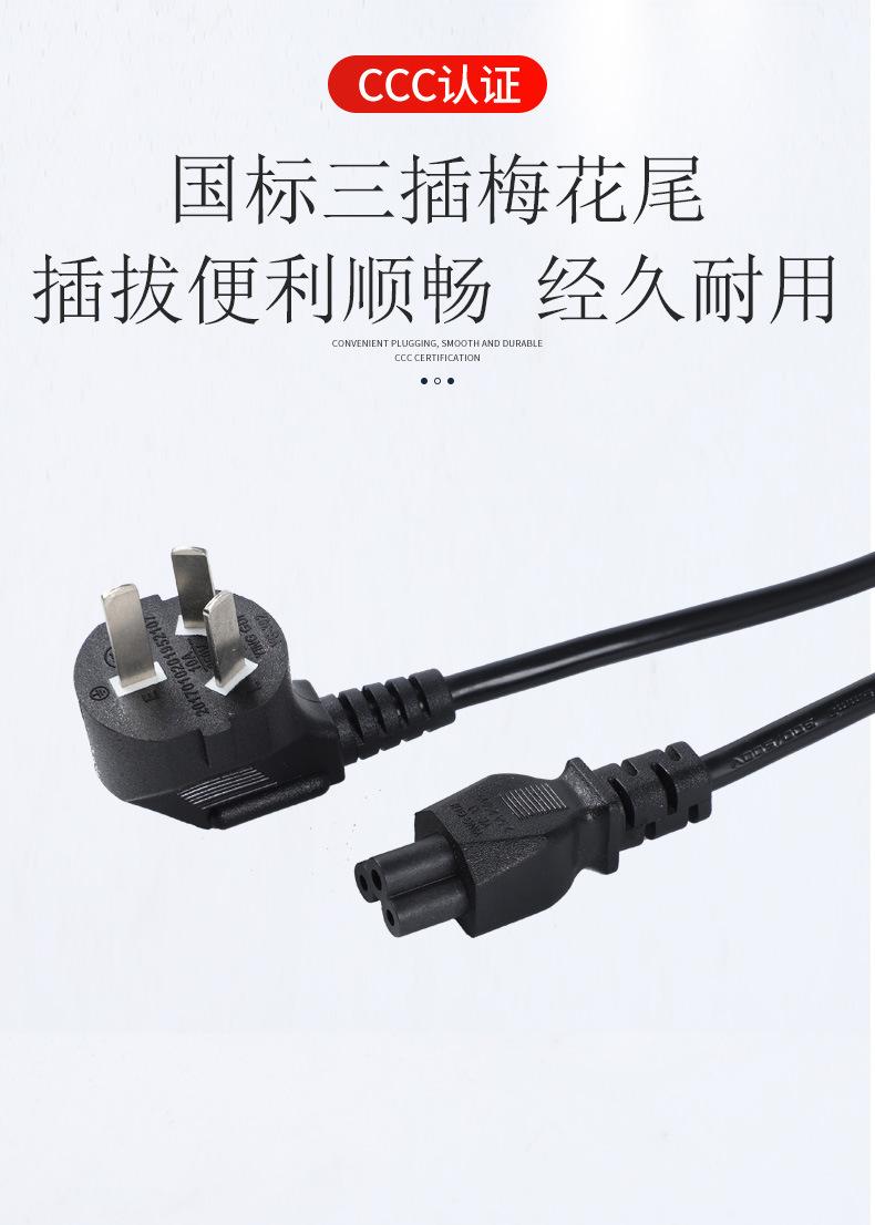 Estándar nacional tres clavijas cola de ciruela estándar nacional enchufe codo cable de alimentación aluminio revestido de cobre 0.15X42 hilos 0.75 metros cuadrados