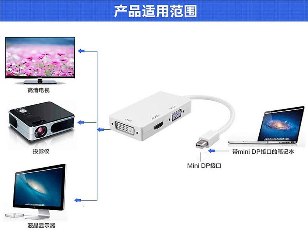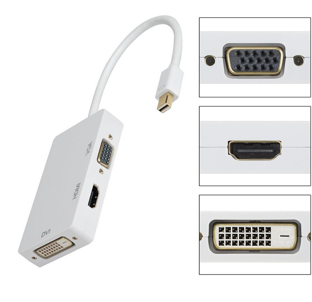 Cable rectangular tres en uno Mini DP 1.2 a VGA HDMI DVI Mini DP 1080p