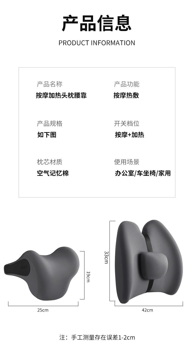 Nuevo Reposacabezas y Soporte Lumbar para Coche Cojín de Espuma Viscoelástica para Coche Cojín Lumbar Almohada Lumbar Almohada para el Cuello Almohada de Masaje Eléctrico Venta al por Mayor