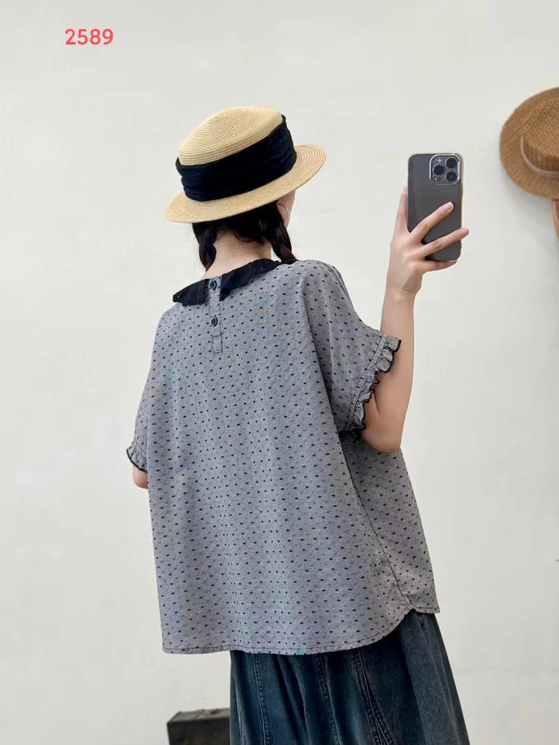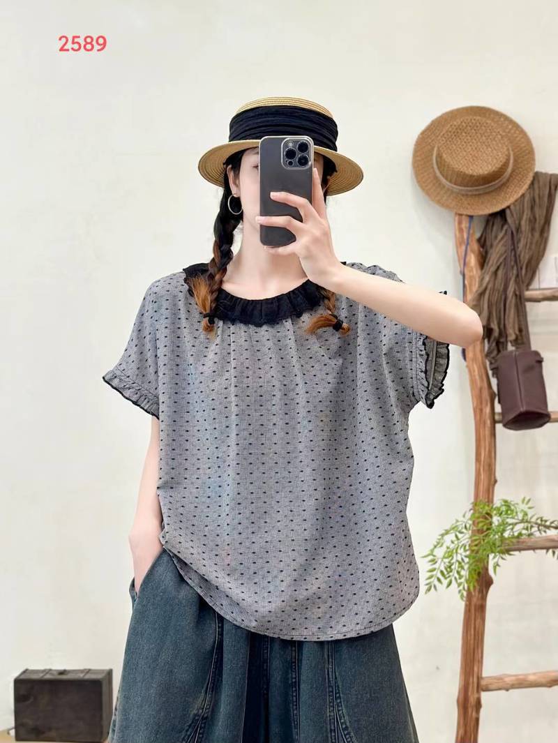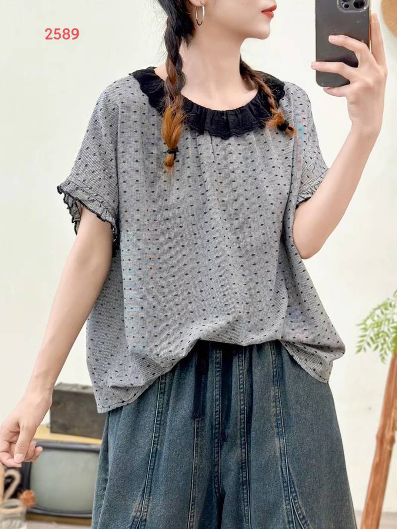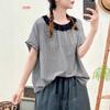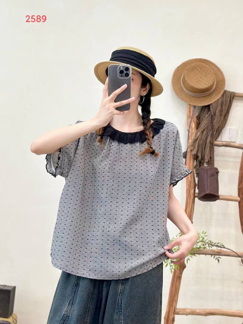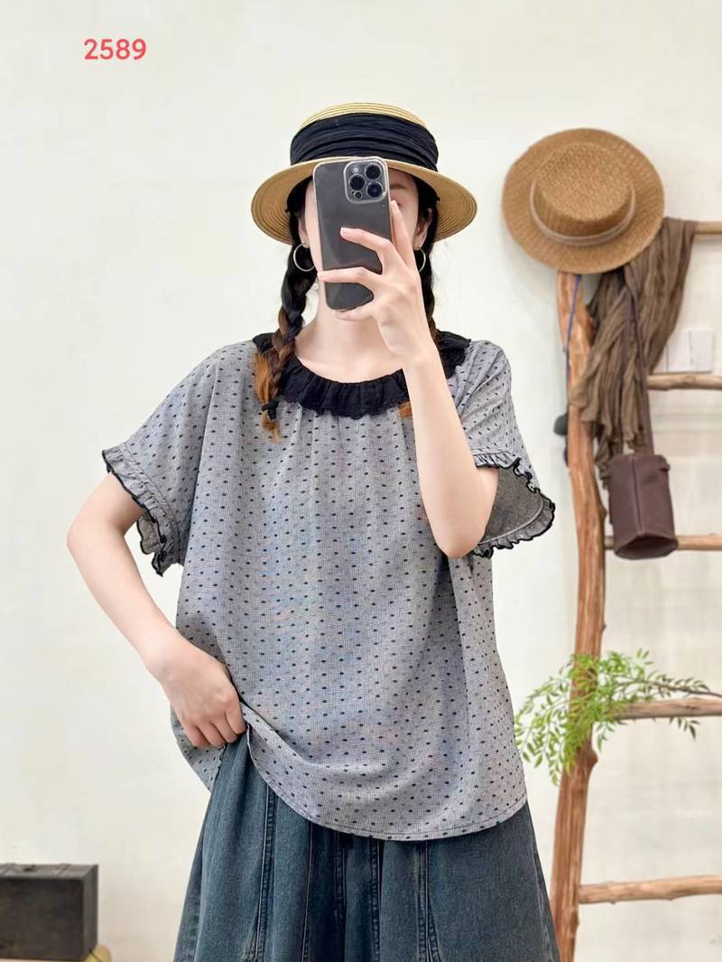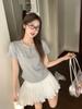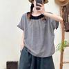 2025 Nuevo Verano para Mujer Estilo Coreano Encaje Bordado Cuello Redondo Jersey Suelto Camiseta de Manga Corta al por Mayor