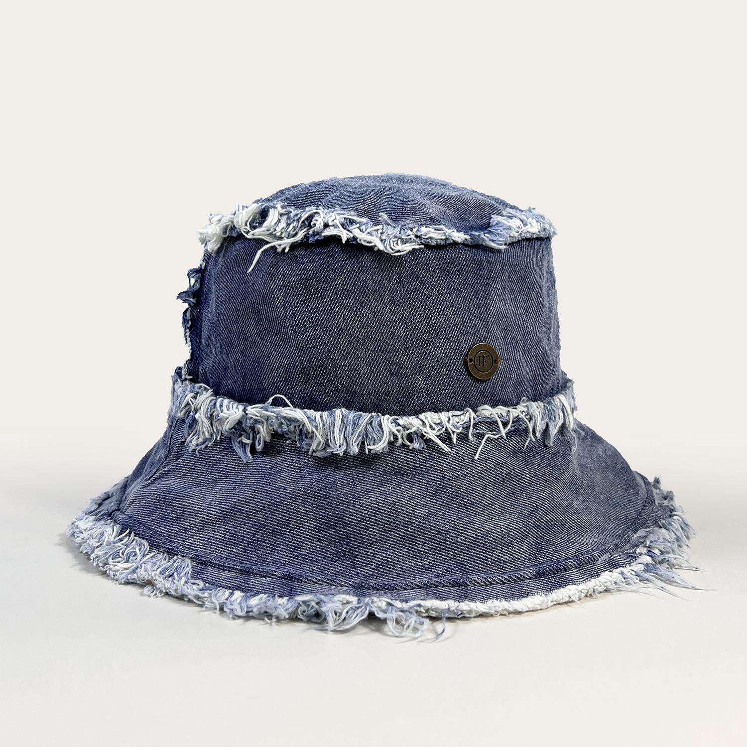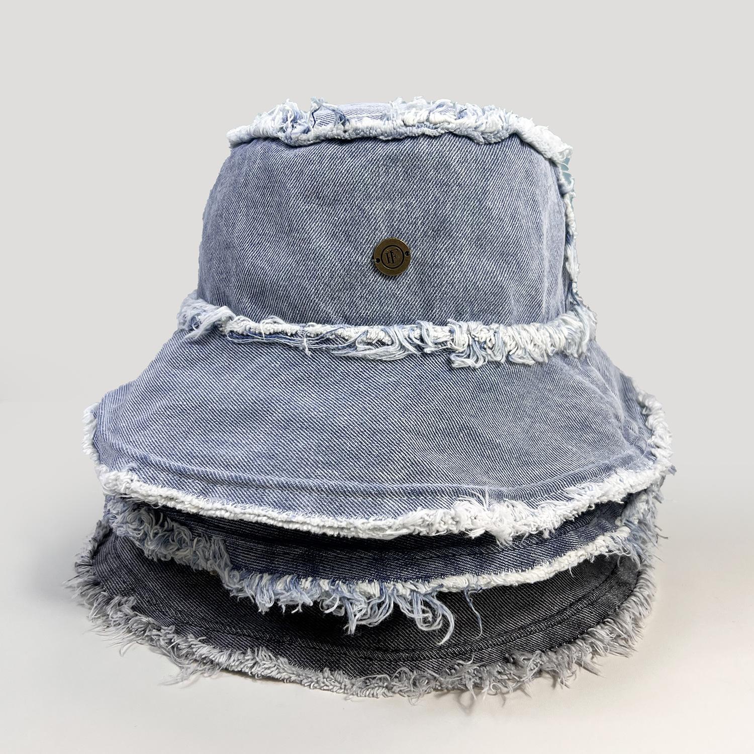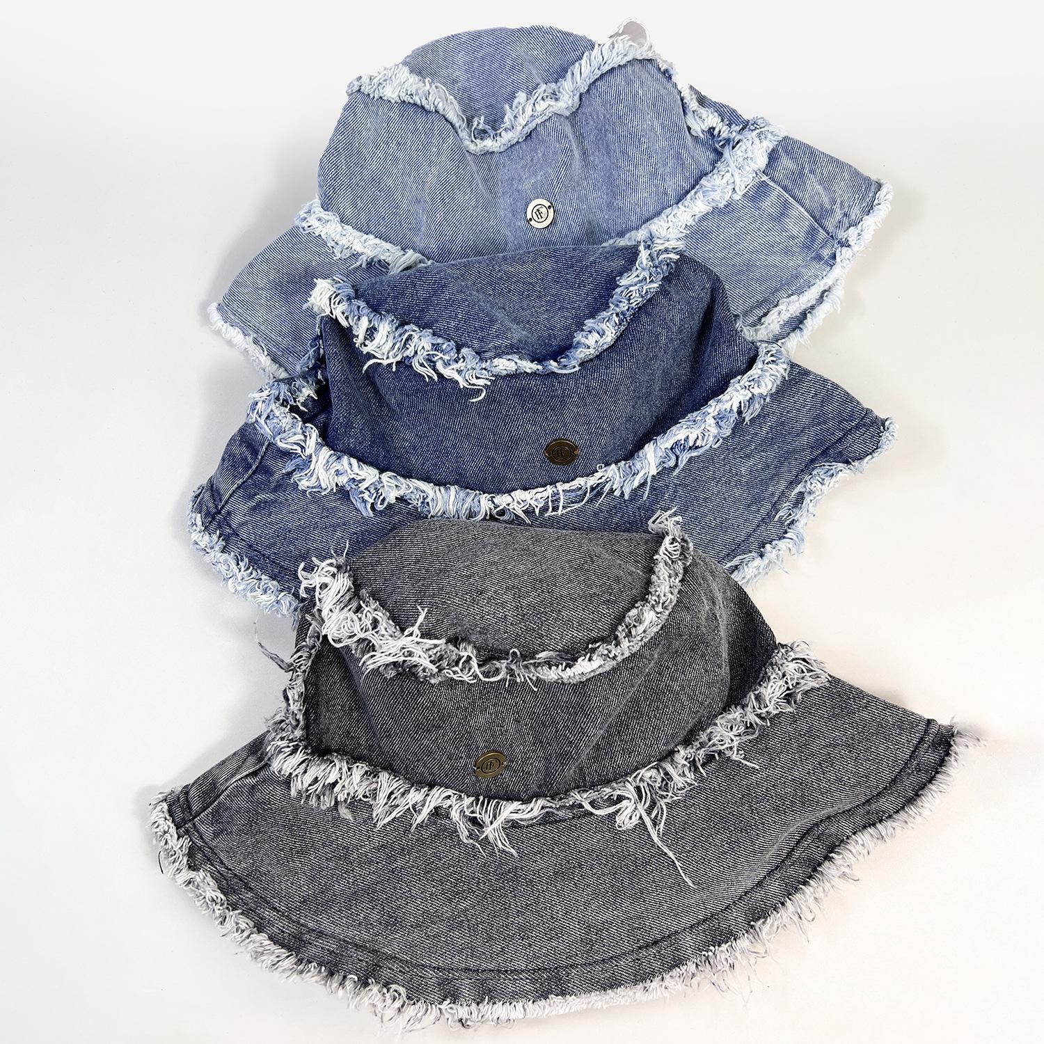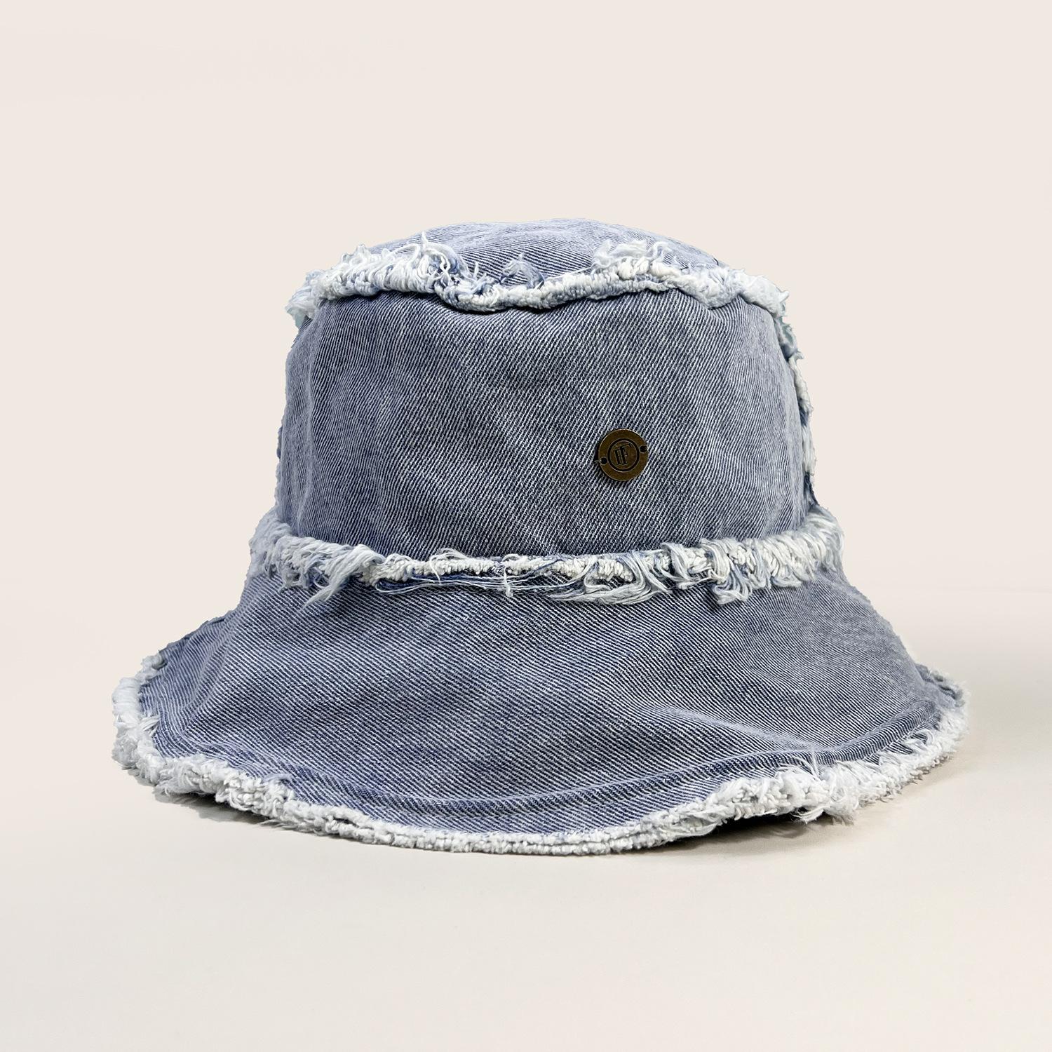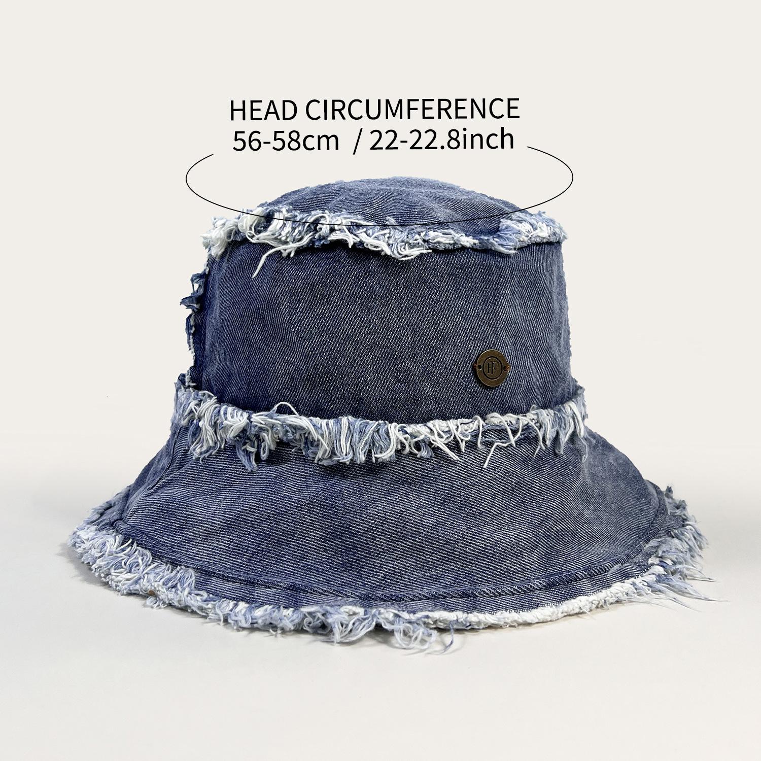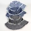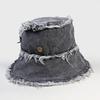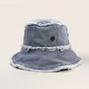 Sombrero de Cubo de Mezclilla Transfronterizo para Mujer, Sombrero de Pescador Versátil Casual para Adelgazar el Rostro de Verano, Sombrero de Sol Desgastado Deshilachado Estilo Japonés Callejero