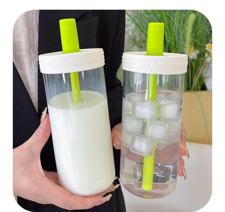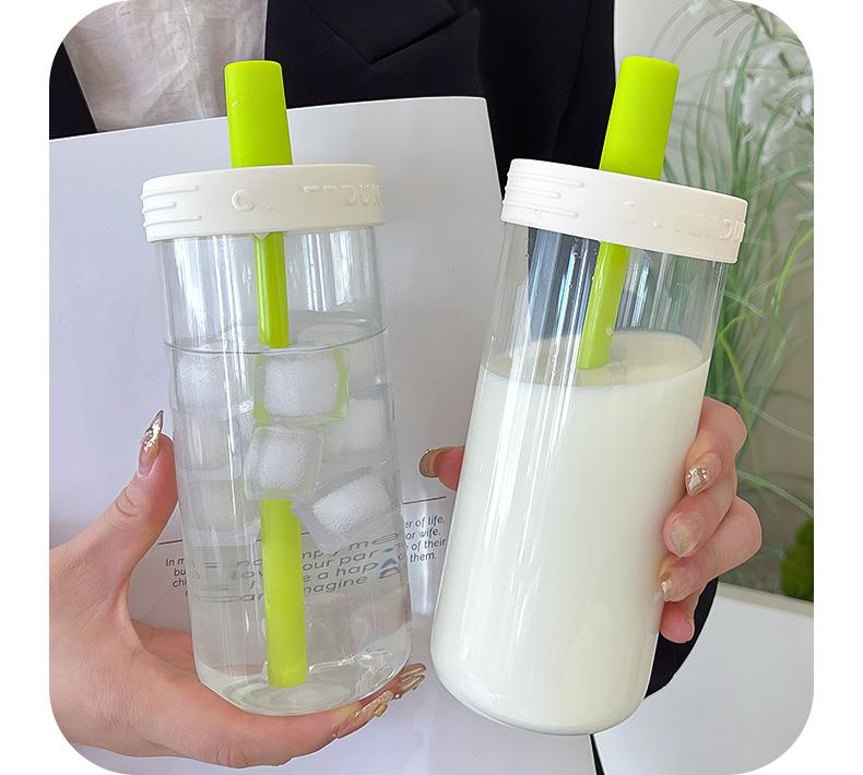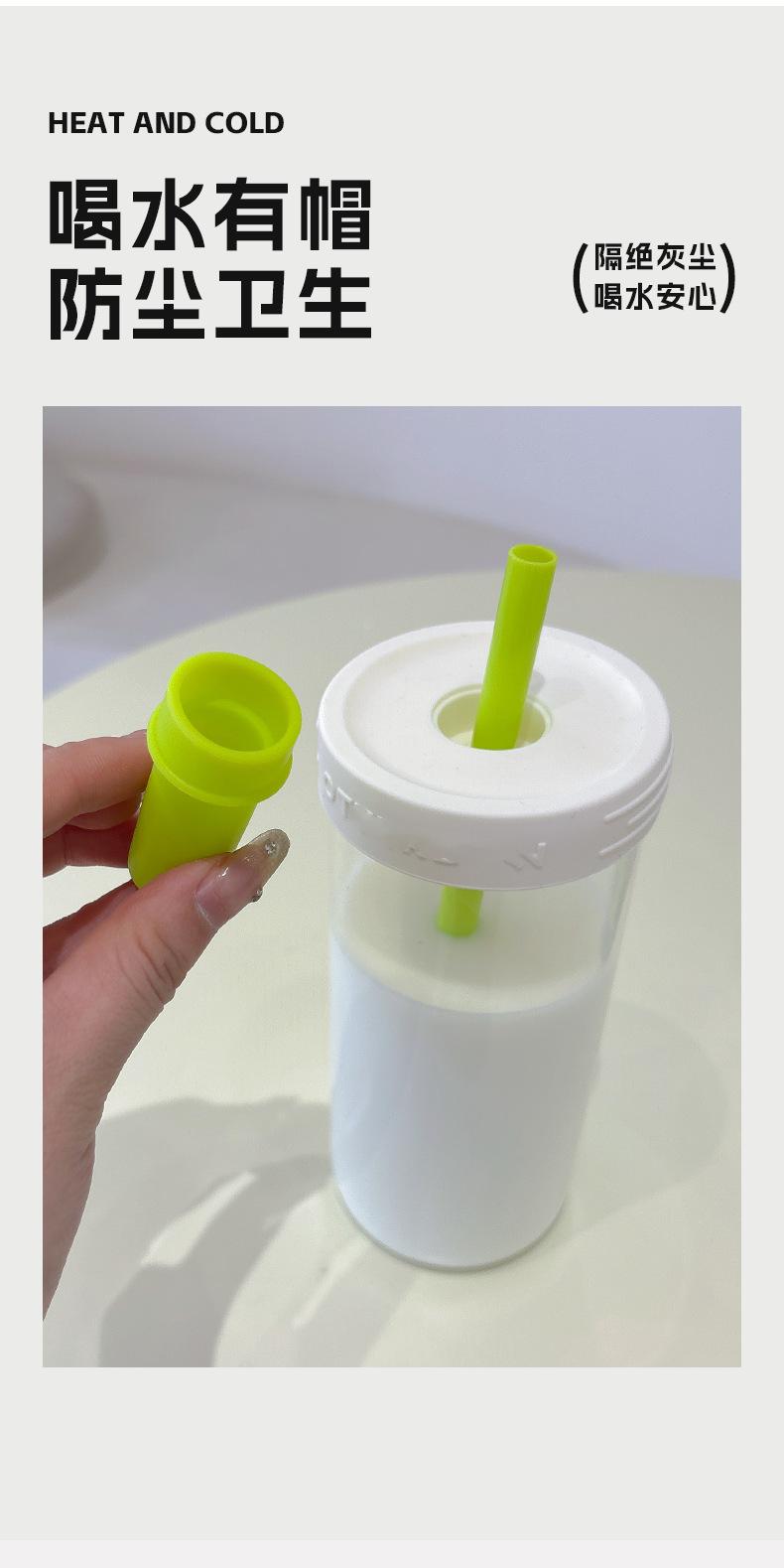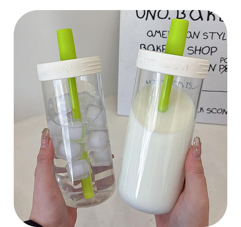 Vaso de Agua de Vidrio para Niñas Oficina Nuevo Taza para Leche Café con Tapa Gran Capacidad Vaso con Pajita para Separación de Agua y Té