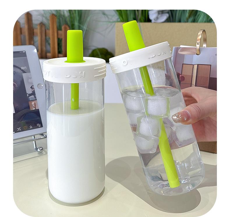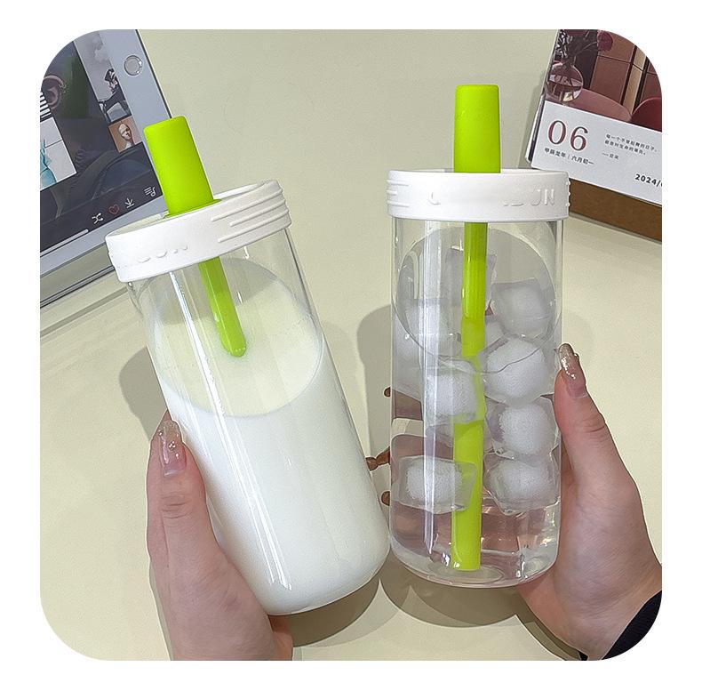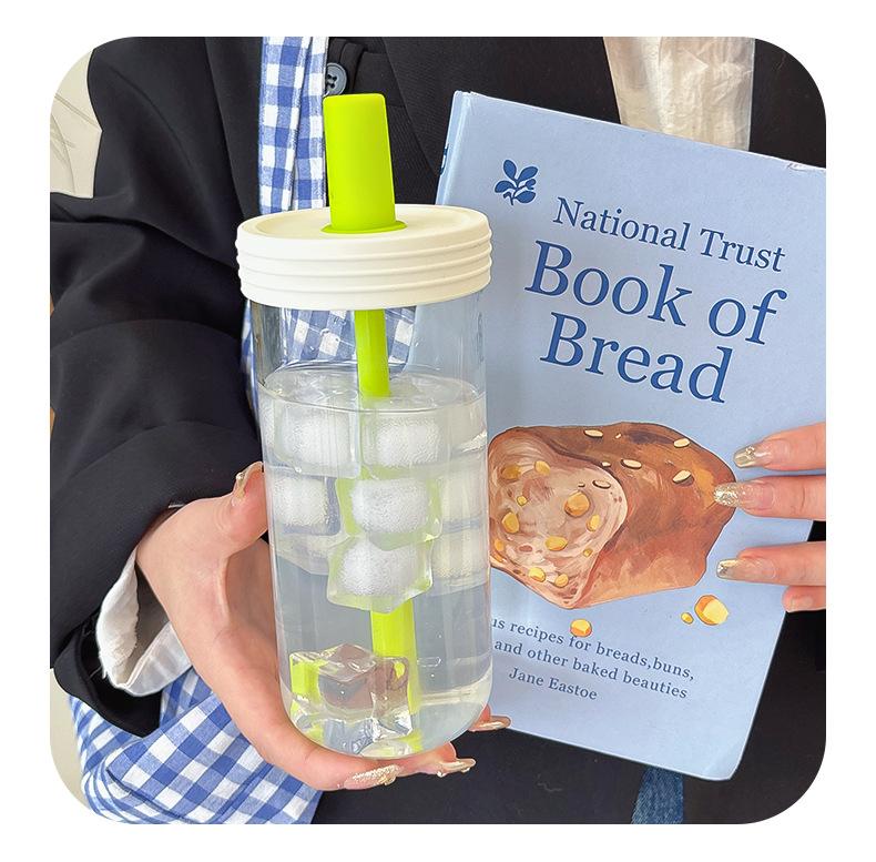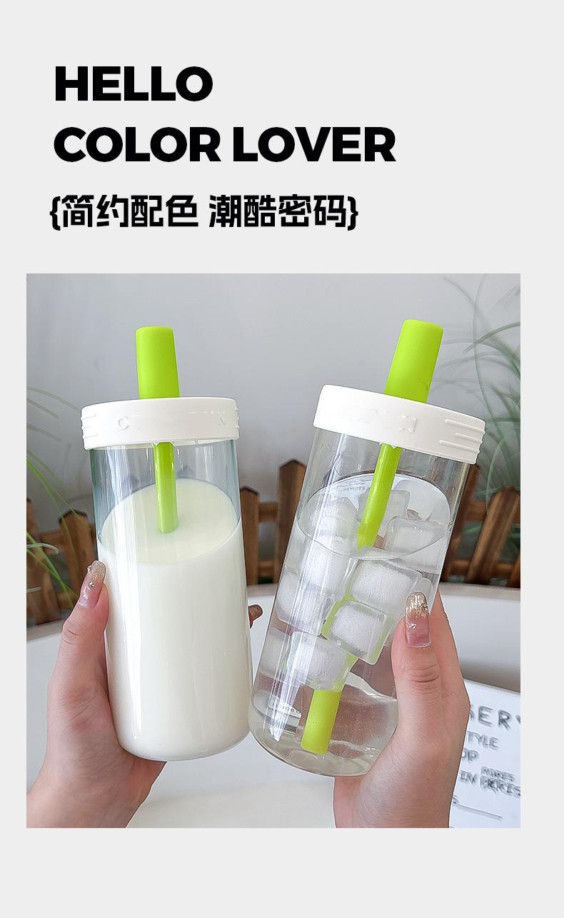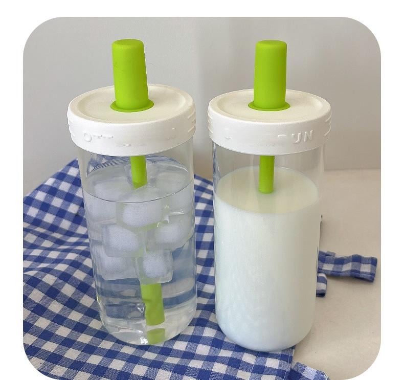 Vaso de Agua de Vidrio para Niñas Oficina Nuevo Taza para Leche Café con Tapa Gran Capacidad Vaso con Pajita para Separación de Agua y Té