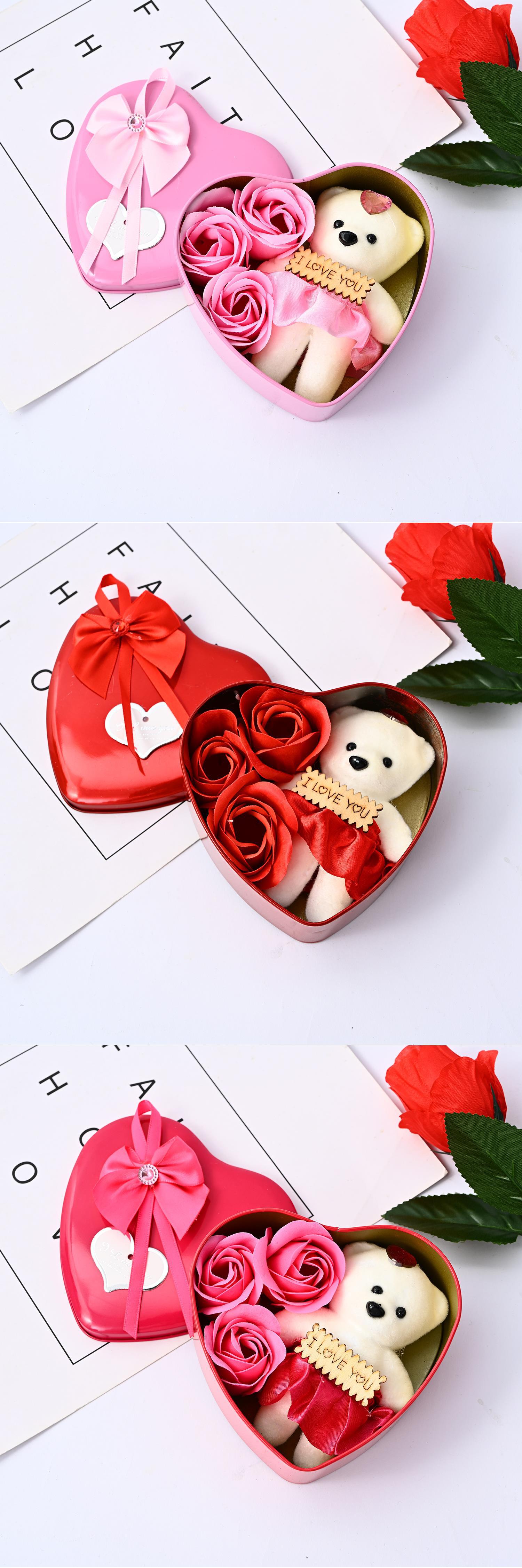 Suministro Transfronterizo 6 Caja de Hierro Oso Helado Flor de Jabón Caja de Hierro en Forma de Corazón Regalo del Día de la Madre Regalo Pequeño