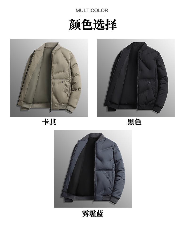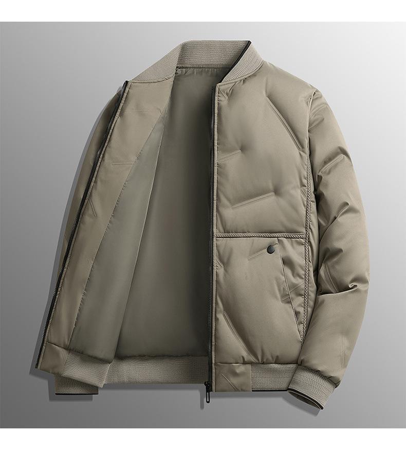 Chamarra de Plumas para Hombre Invierno Nuevo Cuello de Béisbol Plumón de Pato Gris Chaqueta Cálida Moda Juvenil Ropa Exterior Ropa de Papá Top