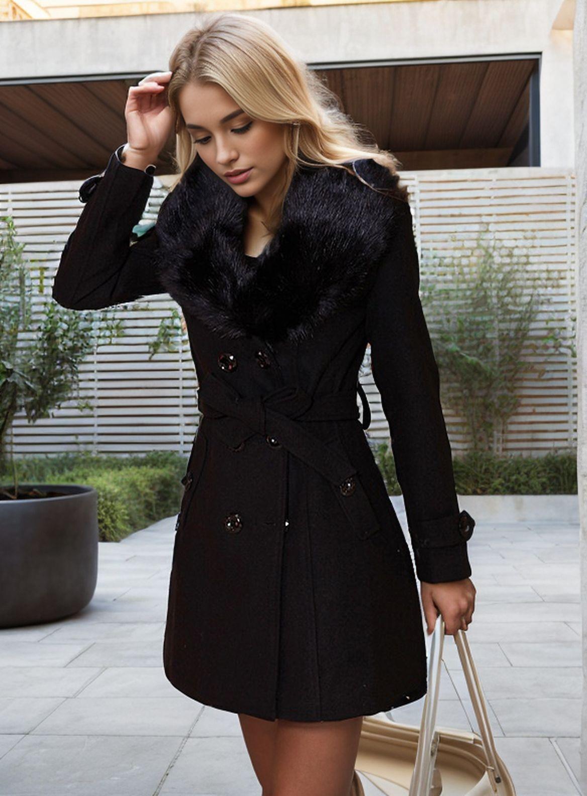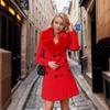 [Código Europeo] Nuevo Otoño e Invierno Transfronterizo Abrigo de Lana para Mujer con Cuello Grande de Lana Abrigo Largo de Lana de Doble Botonadura