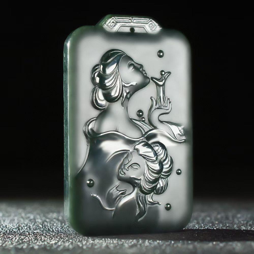 Compra Jade Jade Xinjiang Hetian Zafiro Impresionante Doble Marca de Jade Colgante de Jade Exquisito Colgante de Jade al por mayor en Joom.pro