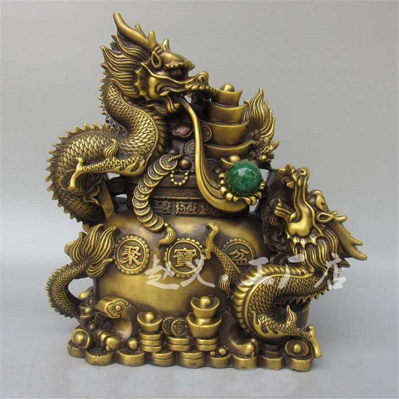 Cornucopia de Latón Doble Bola de Dragón Cornucopia Adornos de Dragón de Latón Manualidades para Hogar Oficina