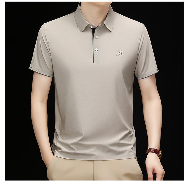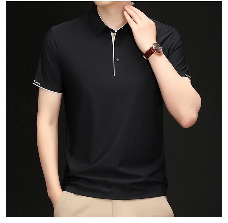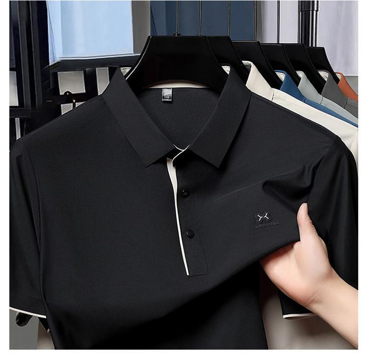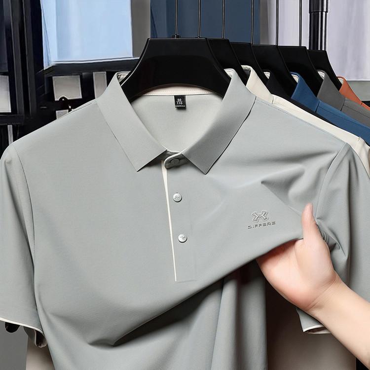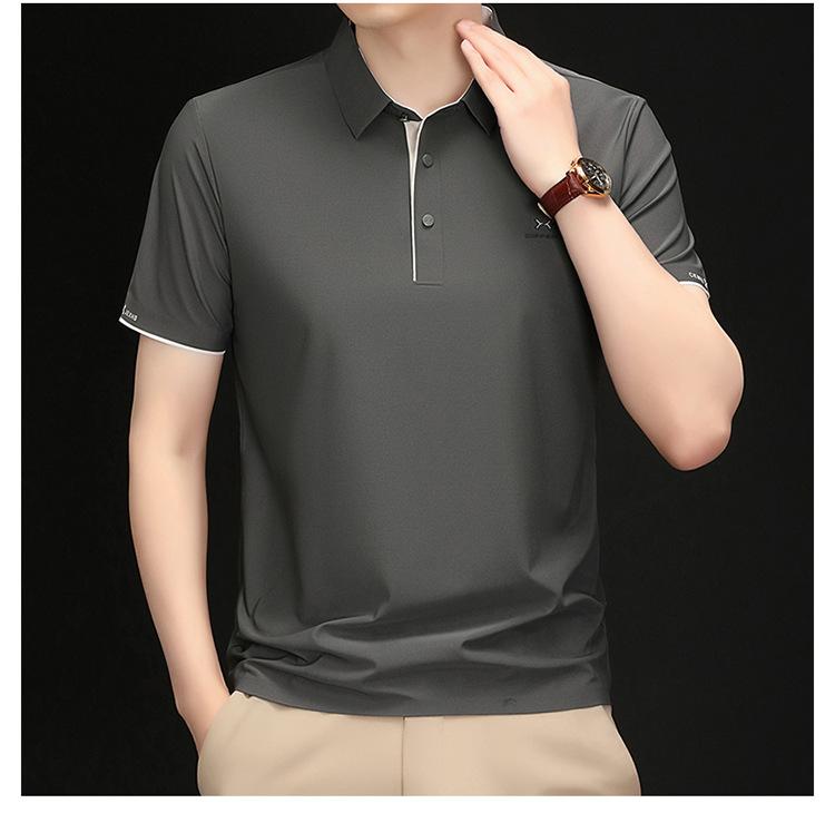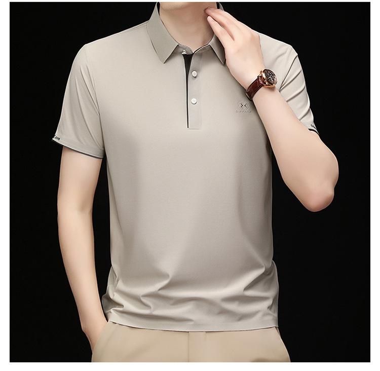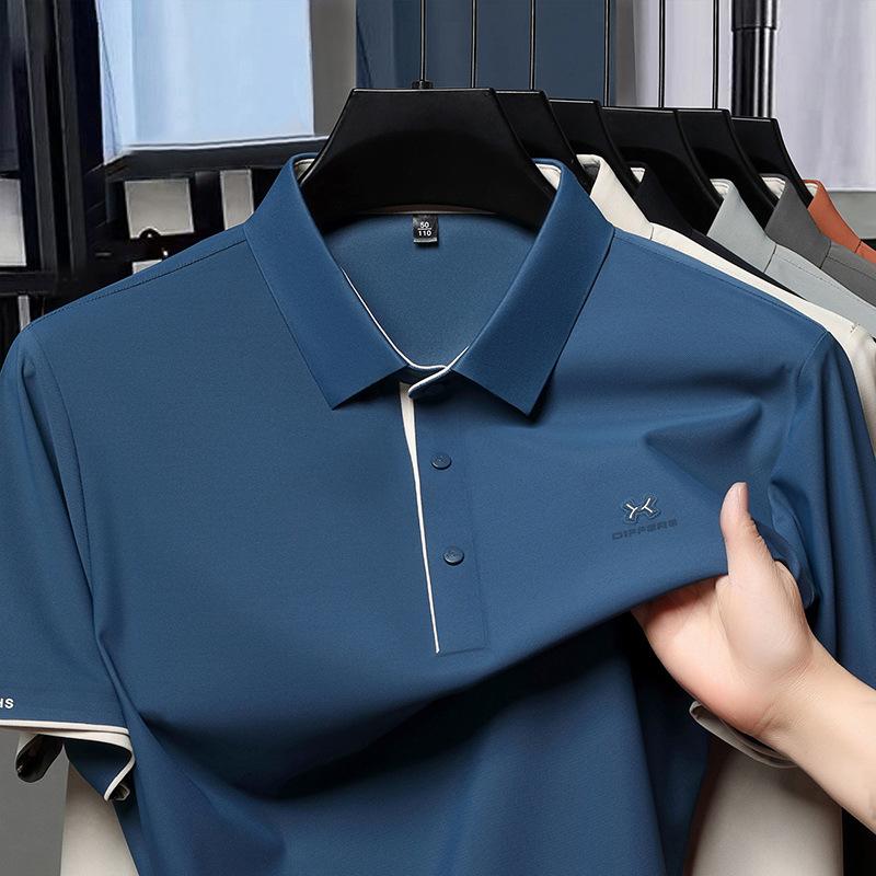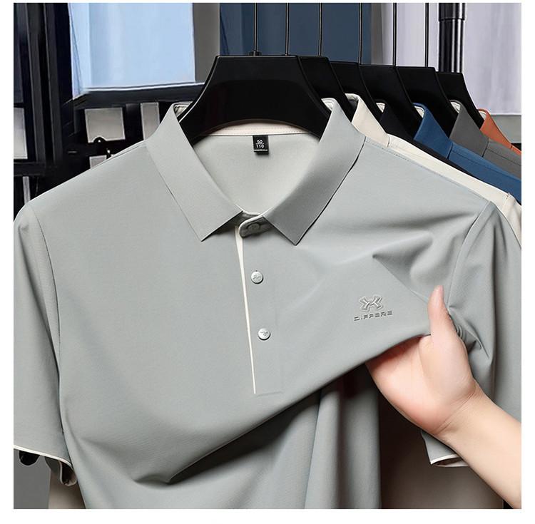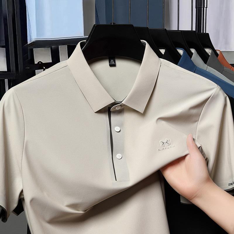 Playera Polo de Manga Corta de Seda de Hielo Sin Costuras de Gama Alta para Hombre 2025 Verano Nueva Casual Diaria Sencilla Transpirable Top
