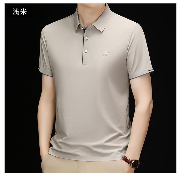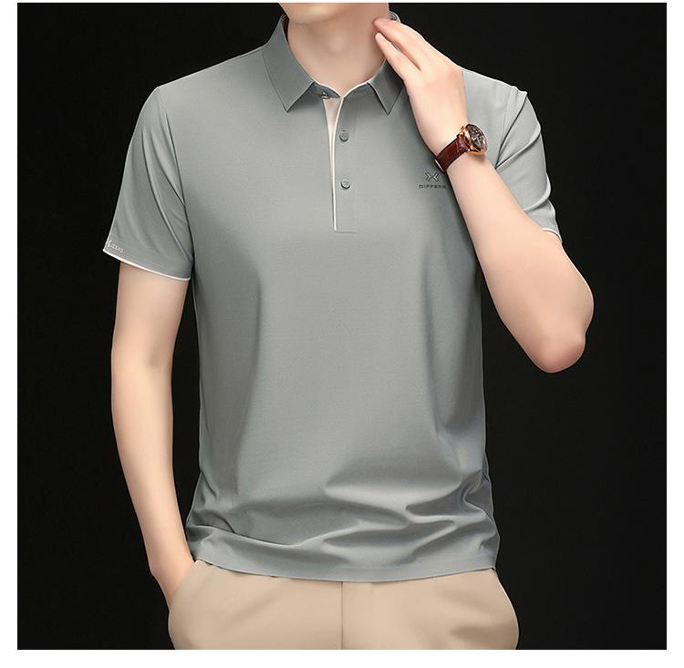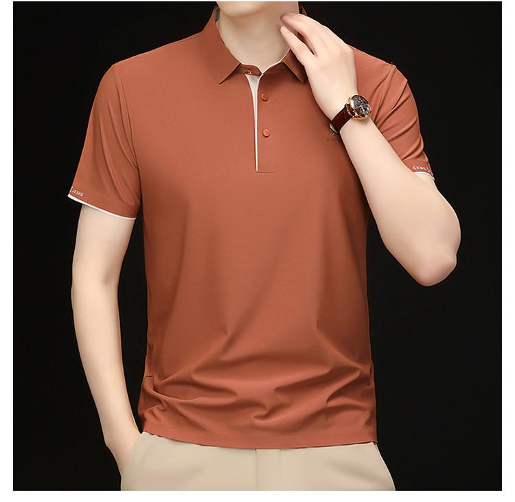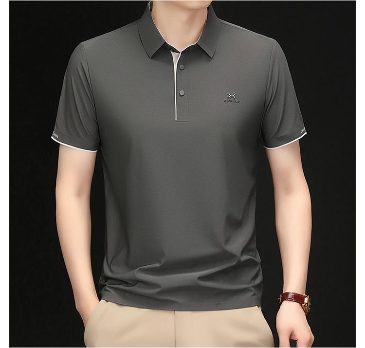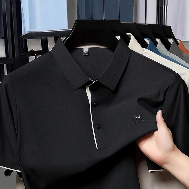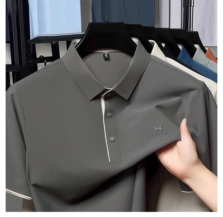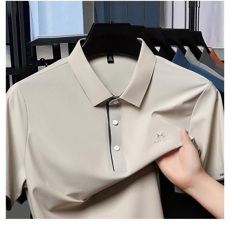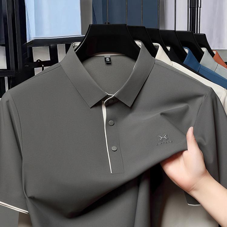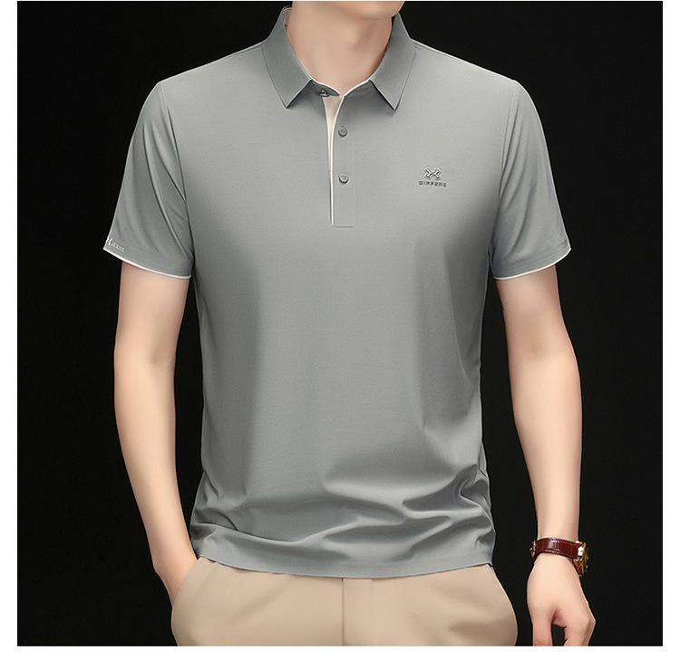 Playera Polo de Manga Corta de Seda de Hielo Sin Costuras de Gama Alta para Hombre 2025 Verano Nueva Casual Diaria Sencilla Transpirable Top