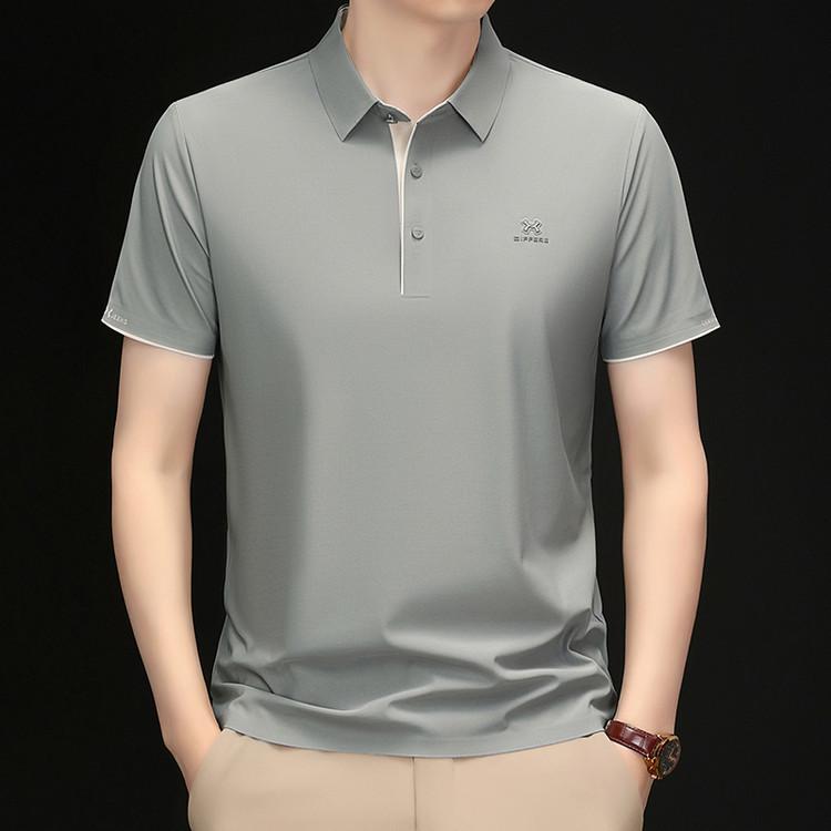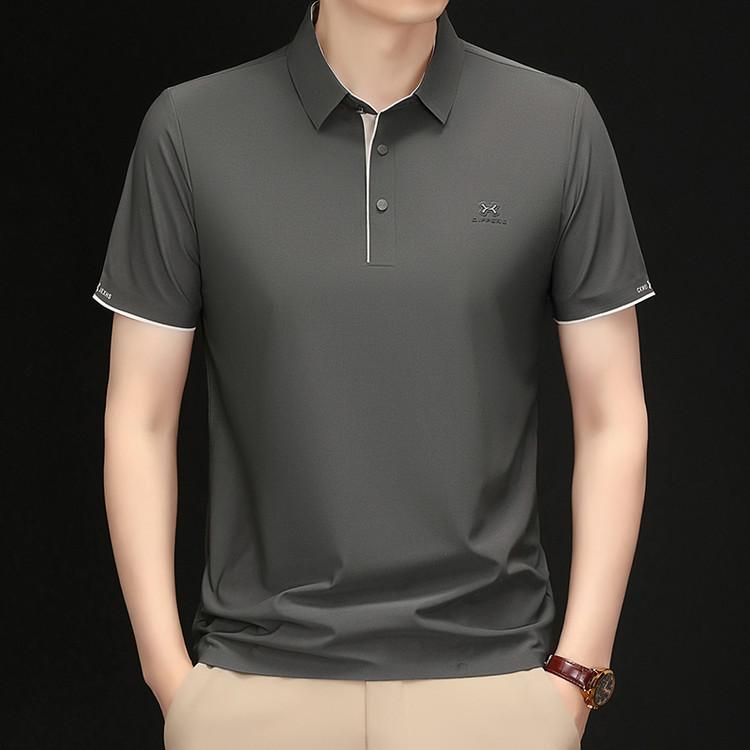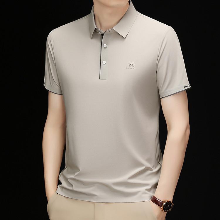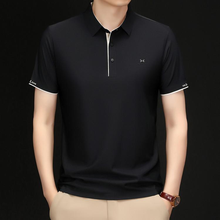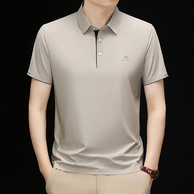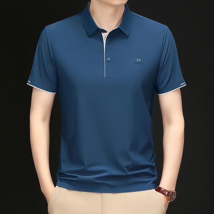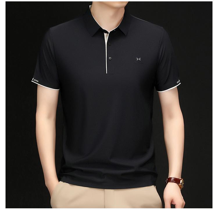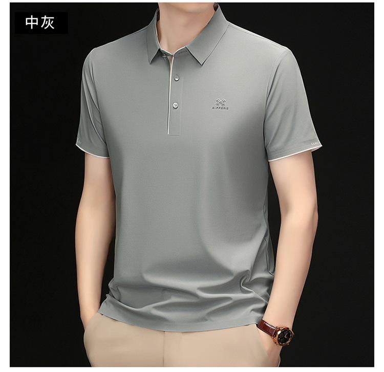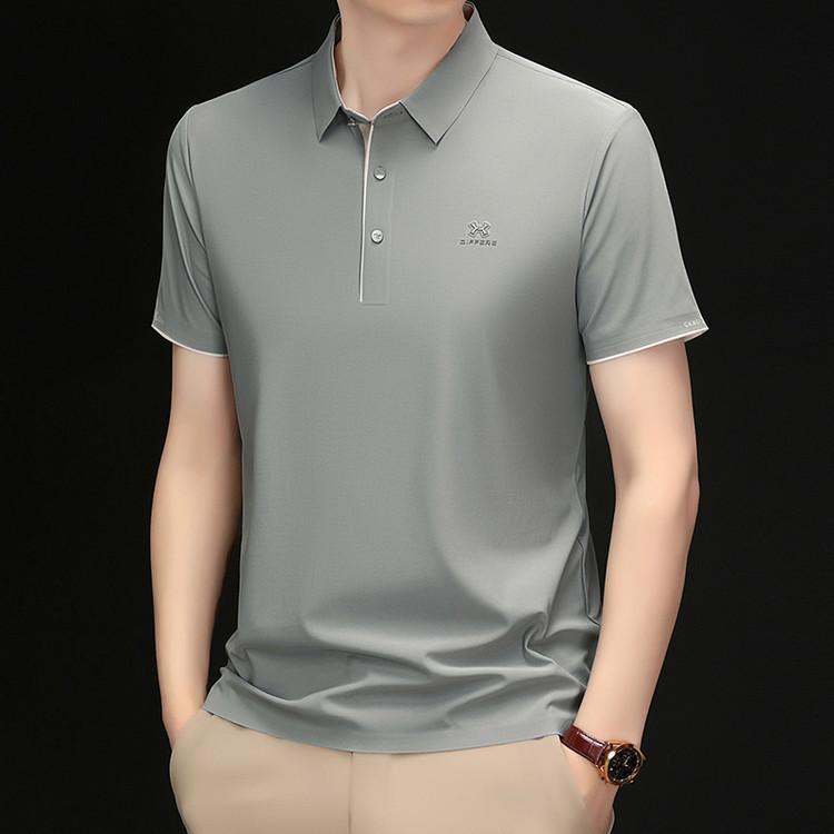 Playera Polo de Manga Corta de Seda de Hielo Sin Costuras de Gama Alta para Hombre 2025 Verano Nueva Casual Diaria Sencilla Transpirable Top
