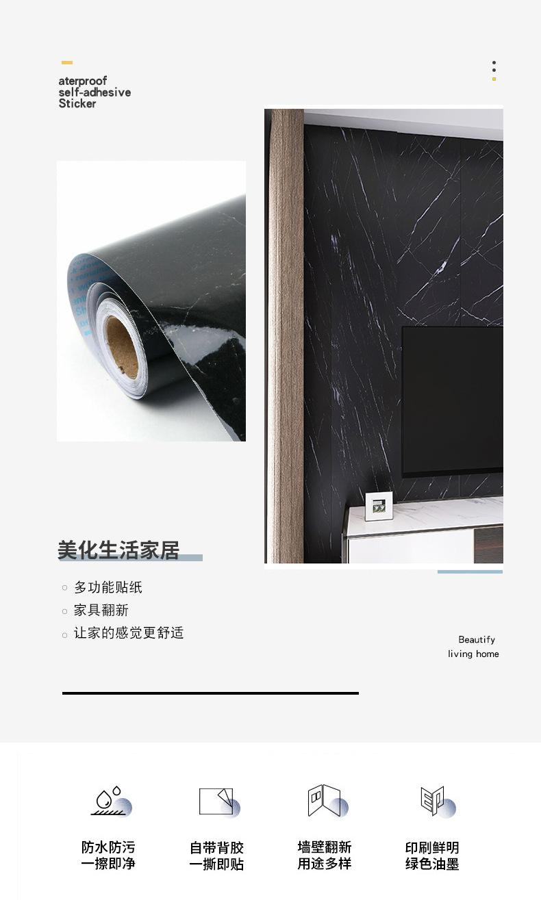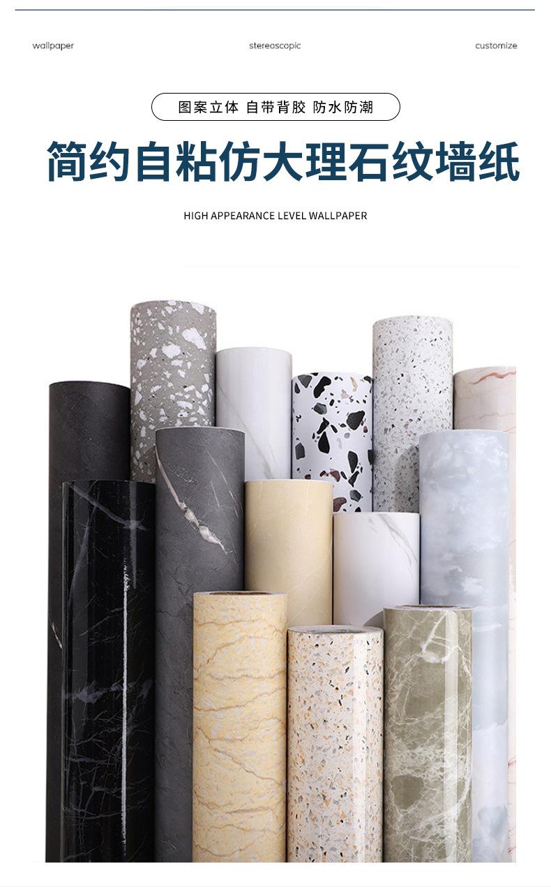 Papel Tapiz Autoadhesivo Simple Impermeable, Resistente a la Humedad, Resistente al Aceite Patrón Mármol Imitación Dormitorio Pvc Fabricante Venta al Mayoreo Artículos para el Hogar