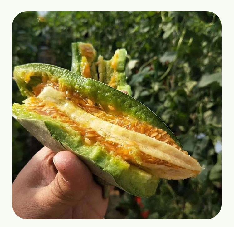 Semillas de Melón Crujiente de Carne Roja al por Mayor, Semillas de Melón y Fruta de Tierra Roja de Cáscara Verde Dulce y Crujiente de Cuatro Estaciones, Semillas de Melón Crujiente de Cuerno