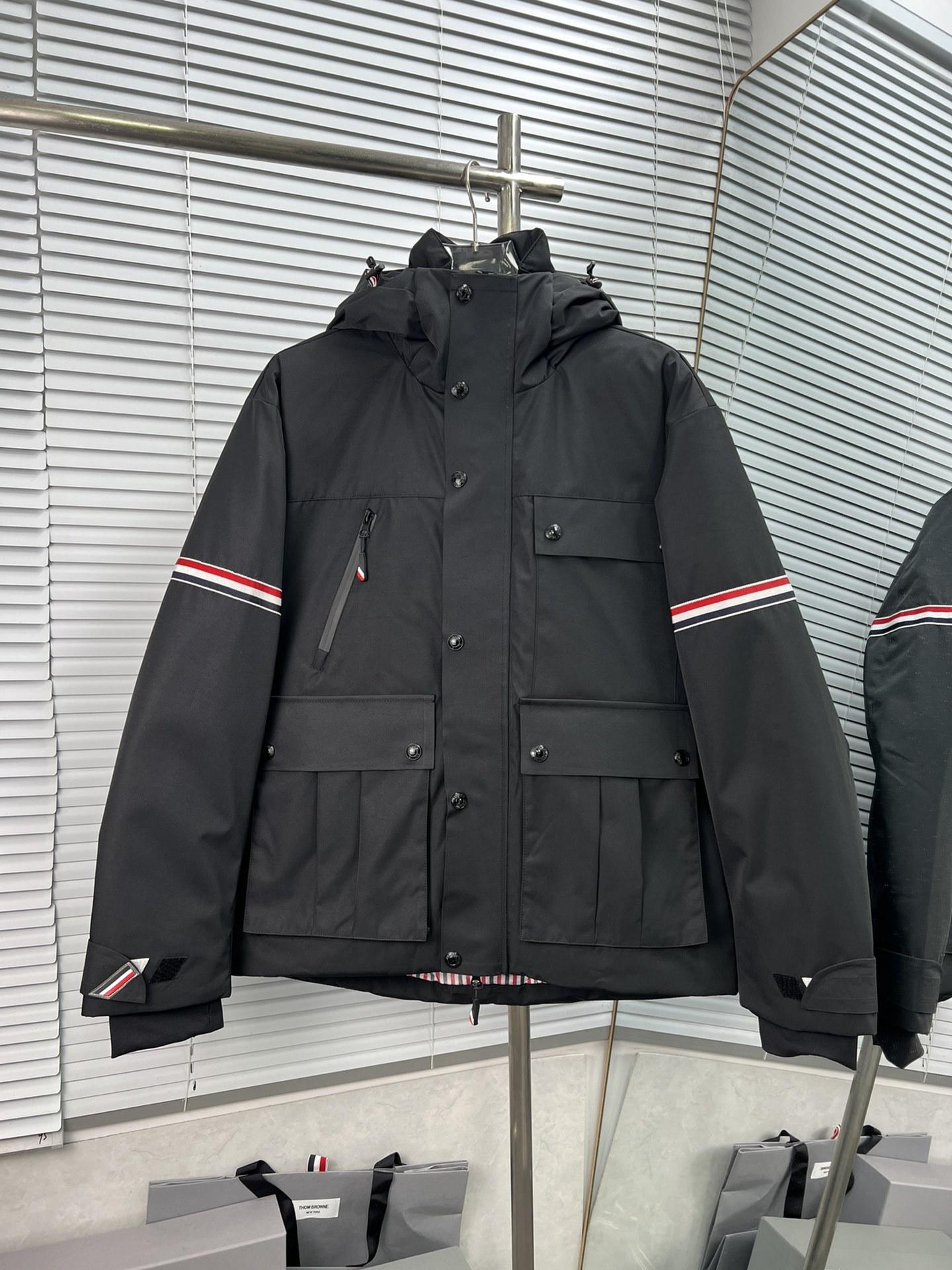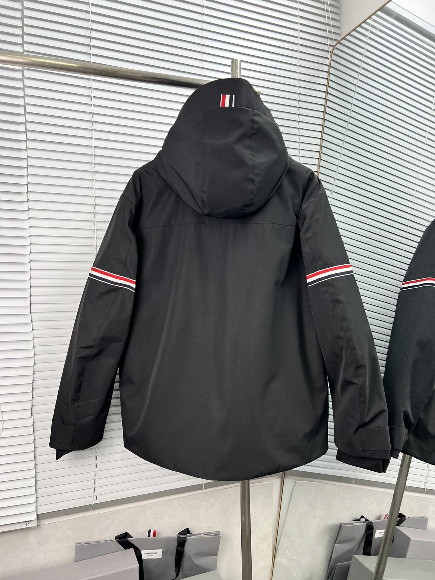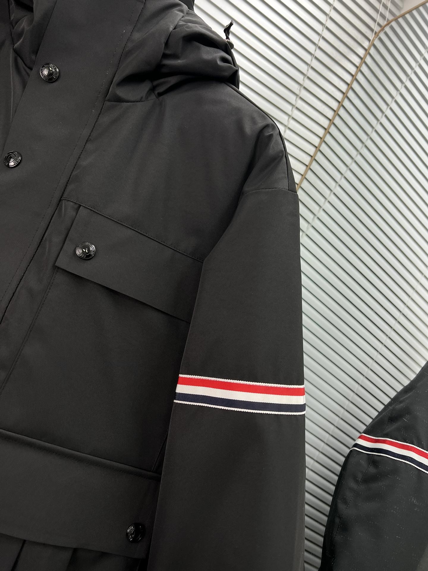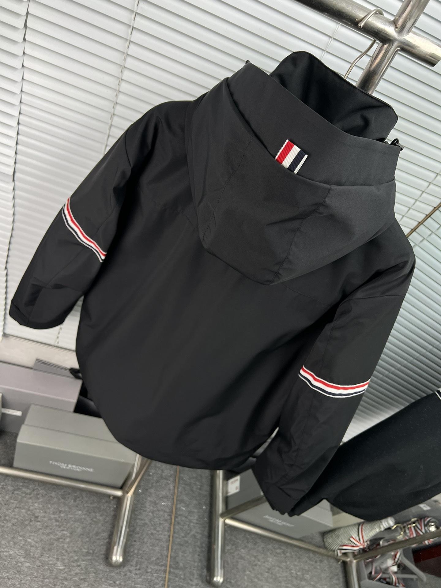 Chaqueta de plumón para hombre de alta calidad directamente de fábrica Tb Nuevo Otoño e Invierno Cinta roja, blanca y azul de doble cara con capucha y manga larga