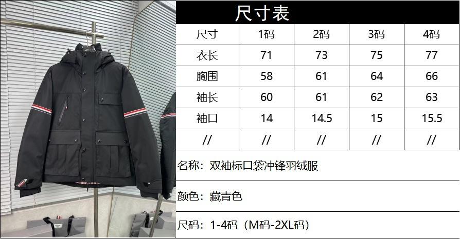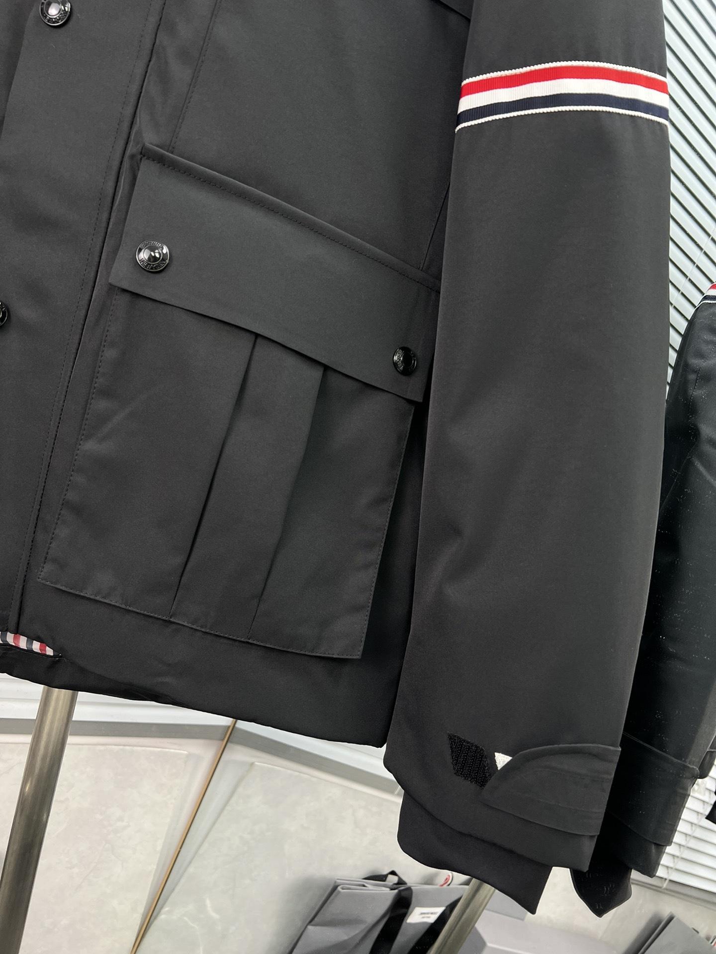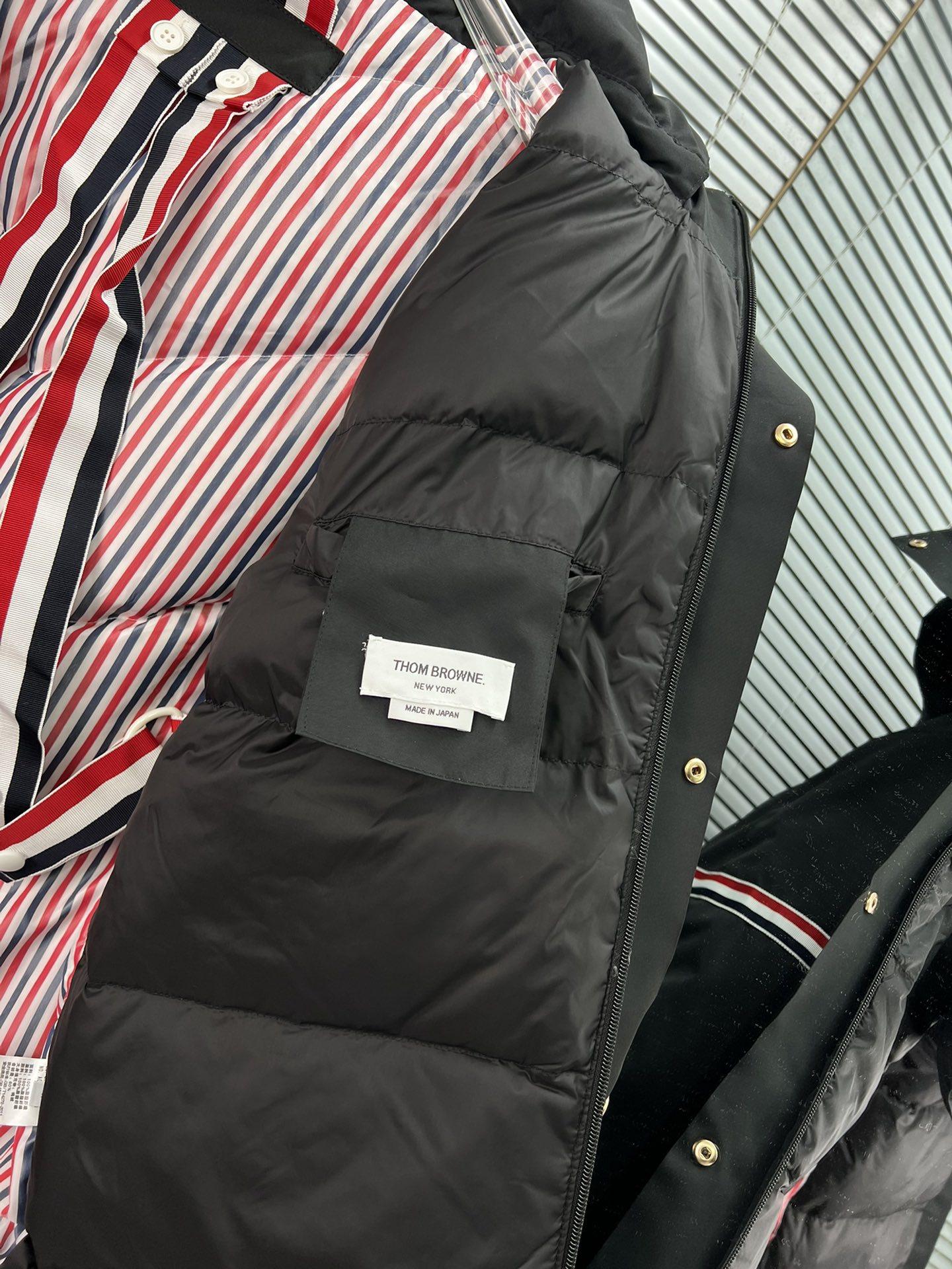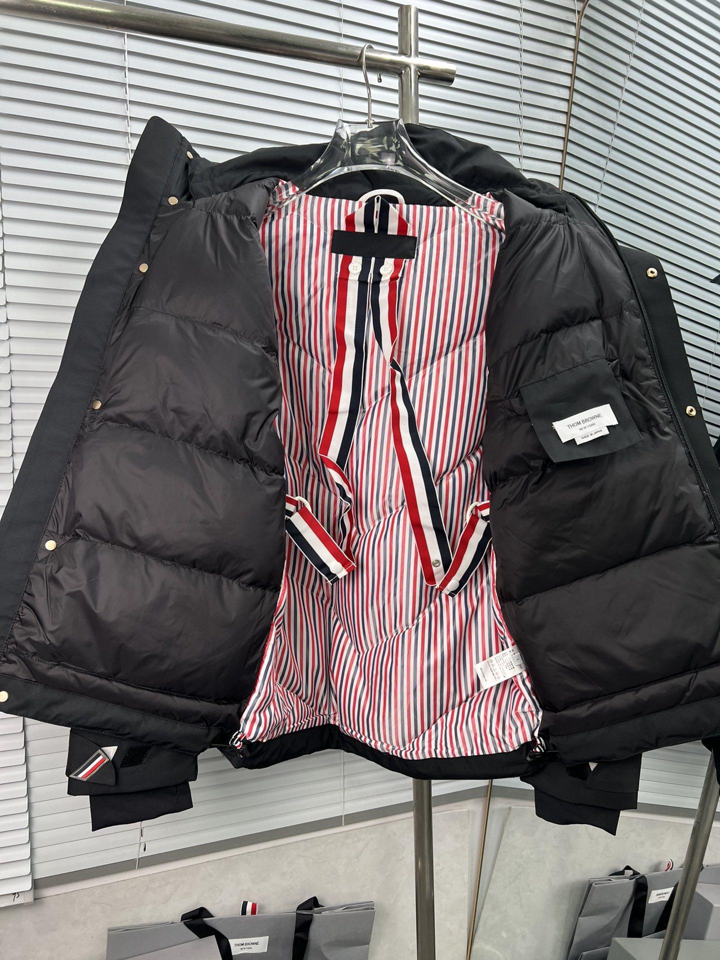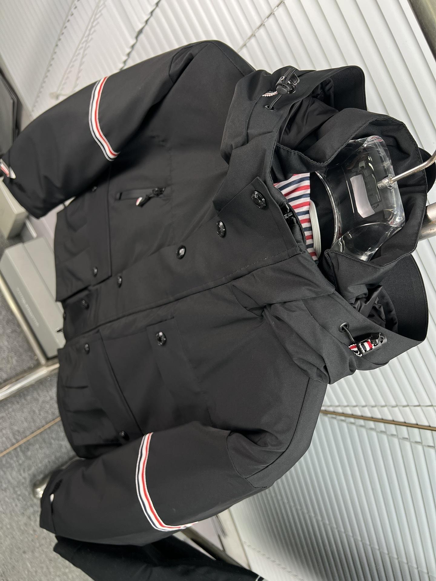 Chaqueta de plumón para hombre de alta calidad directamente de fábrica Tb Nuevo Otoño e Invierno Cinta roja, blanca y azul de doble cara con capucha y manga larga
