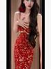 Vestido de Tirantes de Encaje para Vacaciones en la Costa Francesa para Mujer Verano Nuevo Cintura Adelgazante Sin Mangas Falda de Cadera Falda Larga