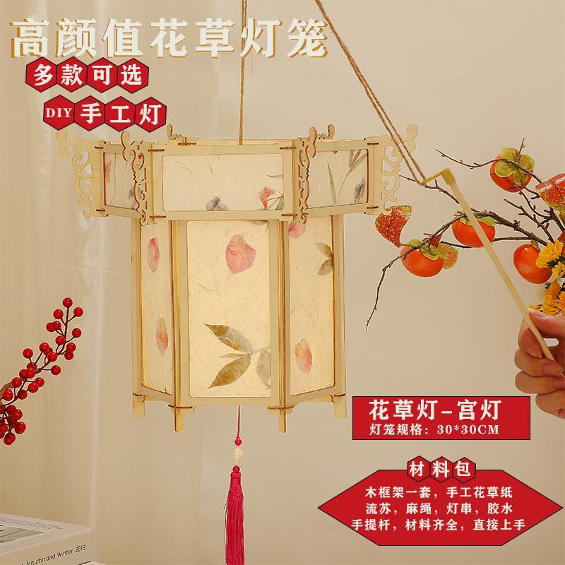 Linterna de Conejo Satchel del Festival del Medio Otoño Venta al por Mayor Linterna de Madera Luminosa Linterna de Palacio de Estilo Antiguo Paquete de Materiales DIY Hecho a Mano para Niños