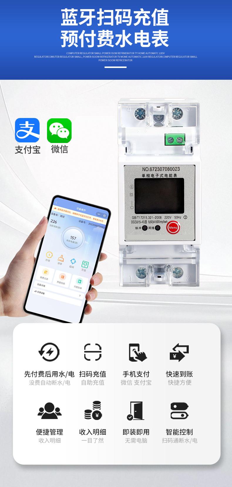 Medidor de Electricidad Monofásico Inteligente 4g Tipo Riel Prepago Recarga por Código de Escaneo