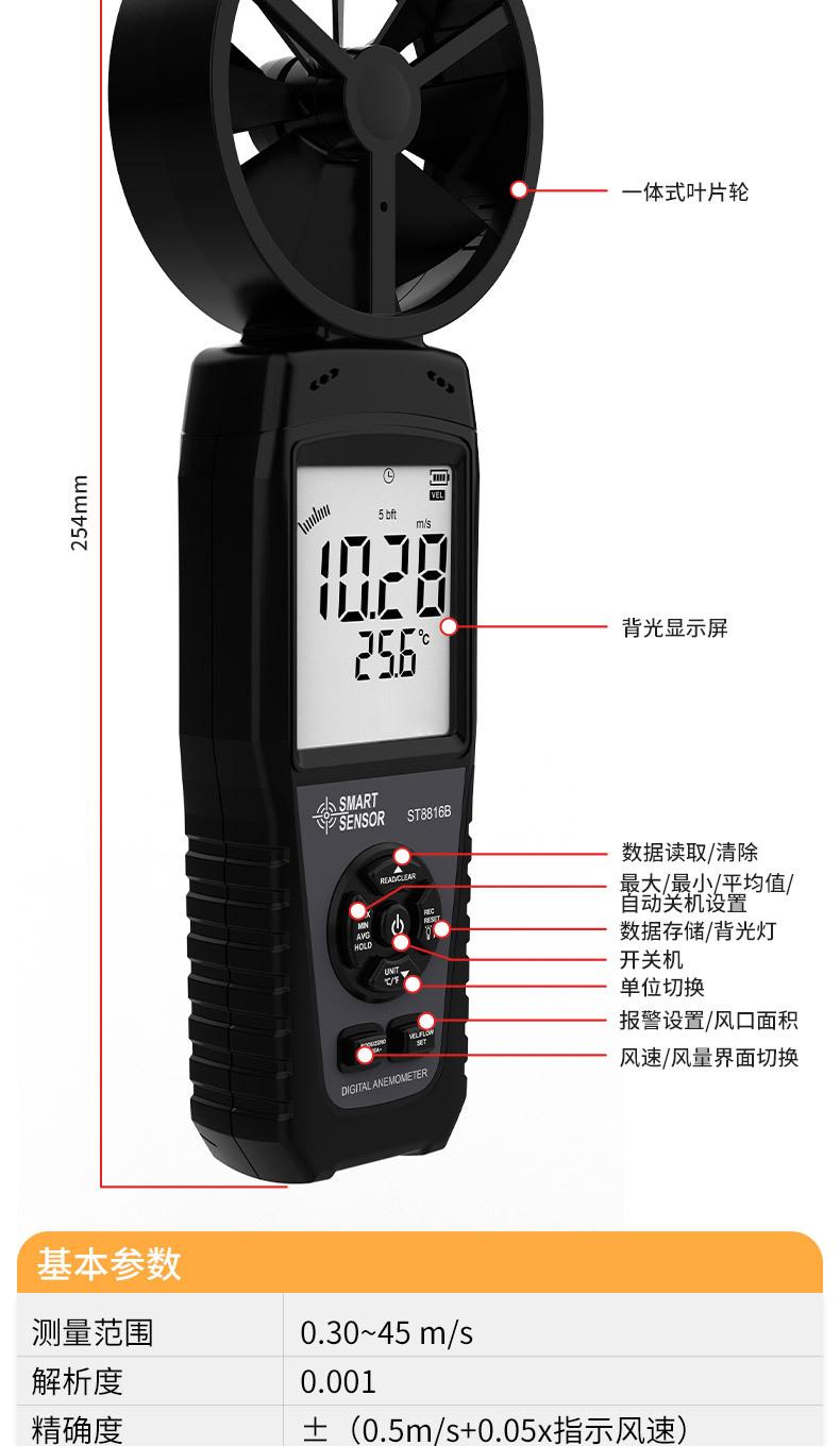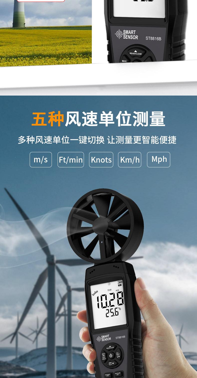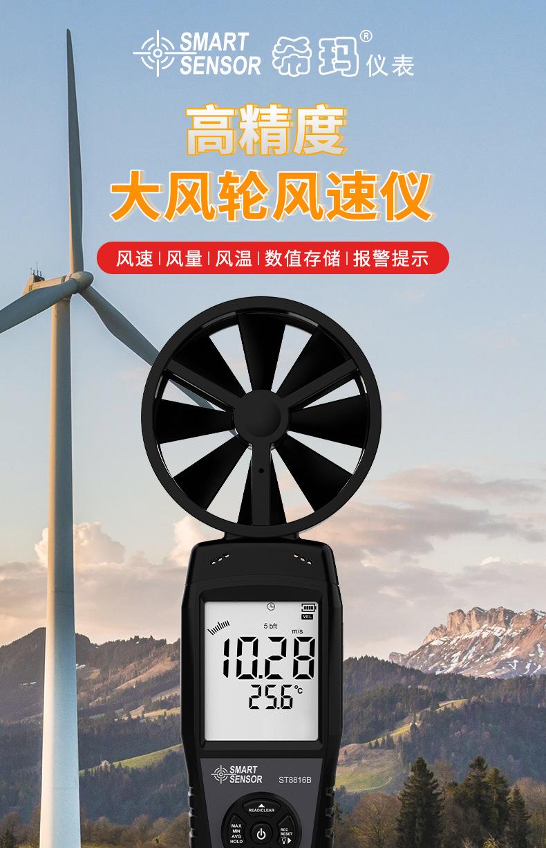 Xima St8816B Medidor de Viento Portátil de Alta Precisión Anemómetro Probador de Volumen de Aire Tipo Copa de Viento Medición de Velocidad del Viento