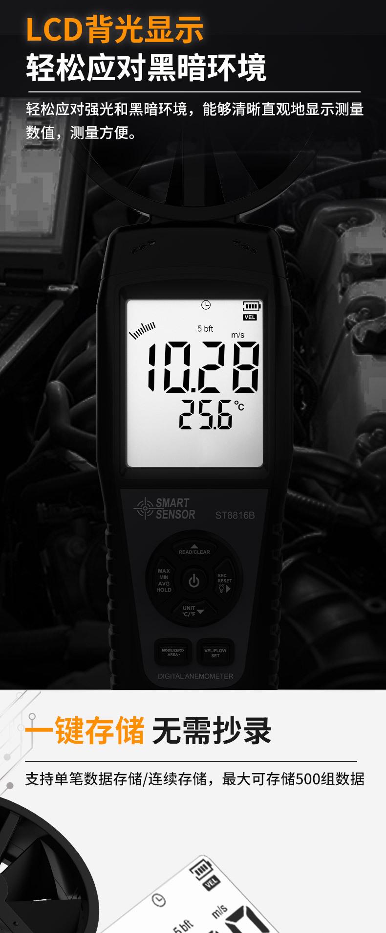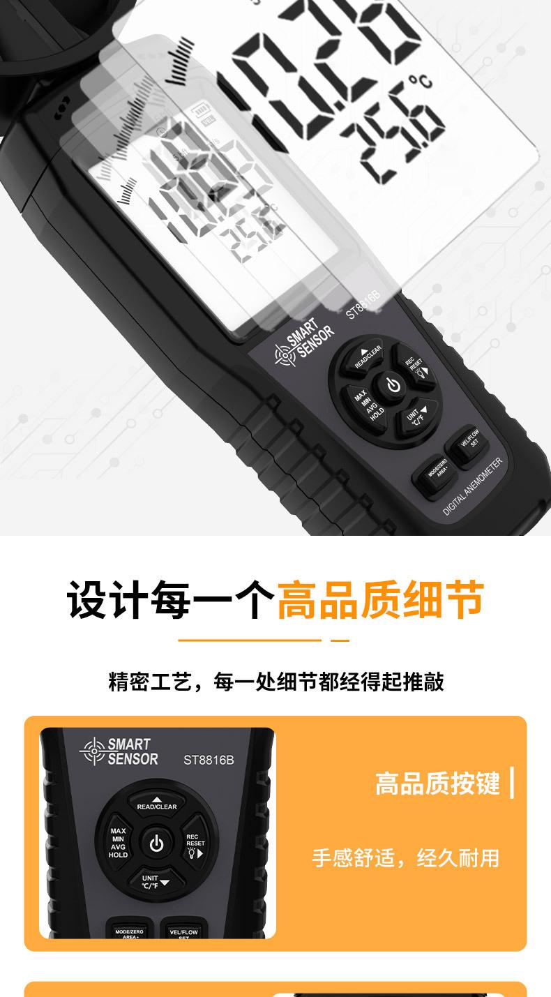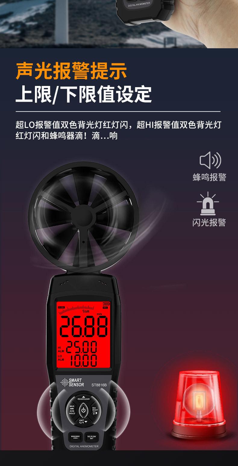 Xima St8816B Medidor de Viento Portátil de Alta Precisión Anemómetro Probador de Volumen de Aire Tipo Copa de Viento Medición de Velocidad del Viento