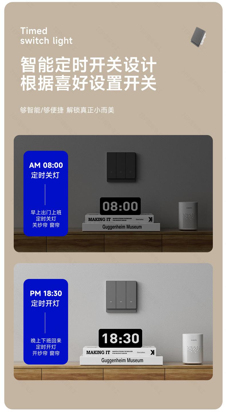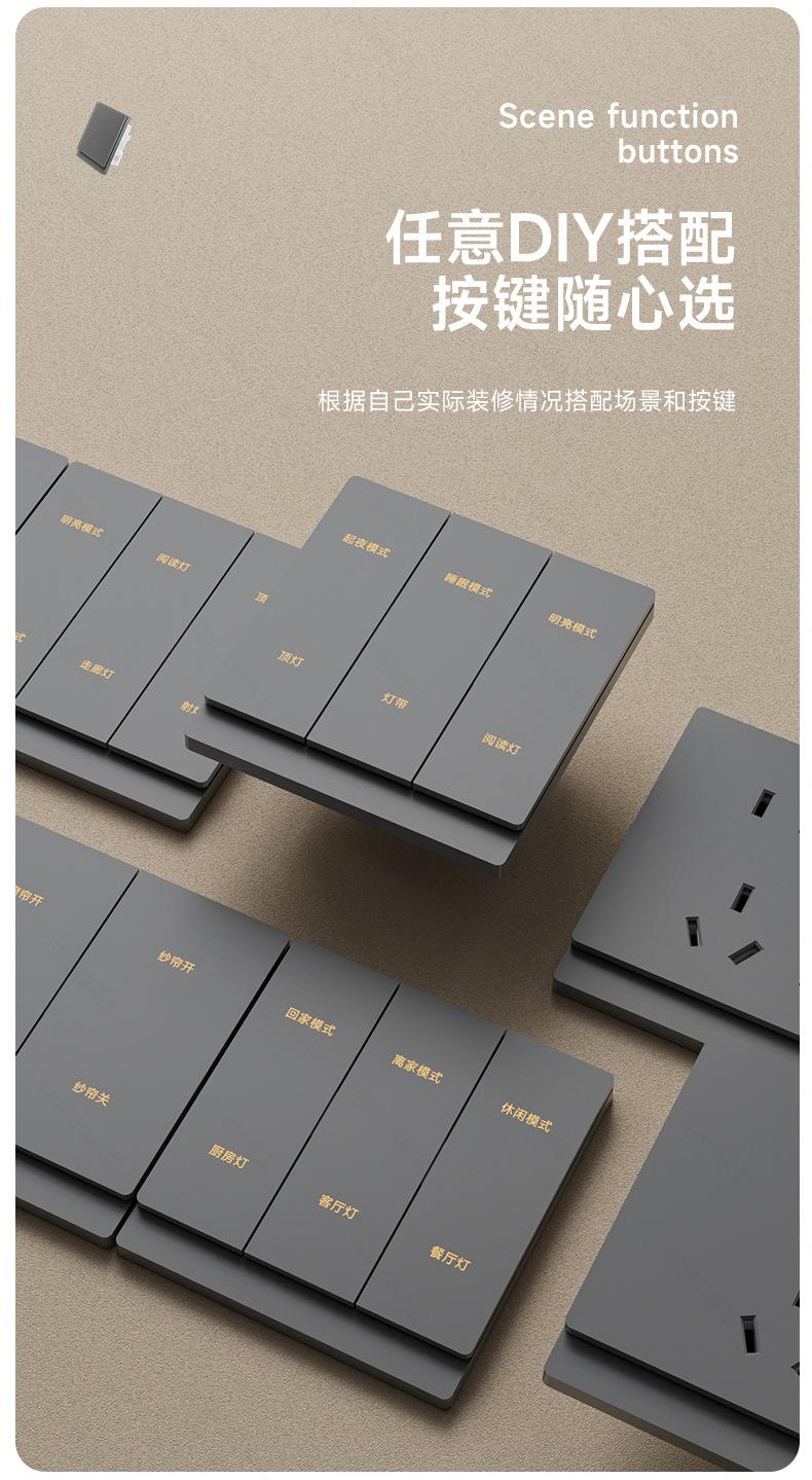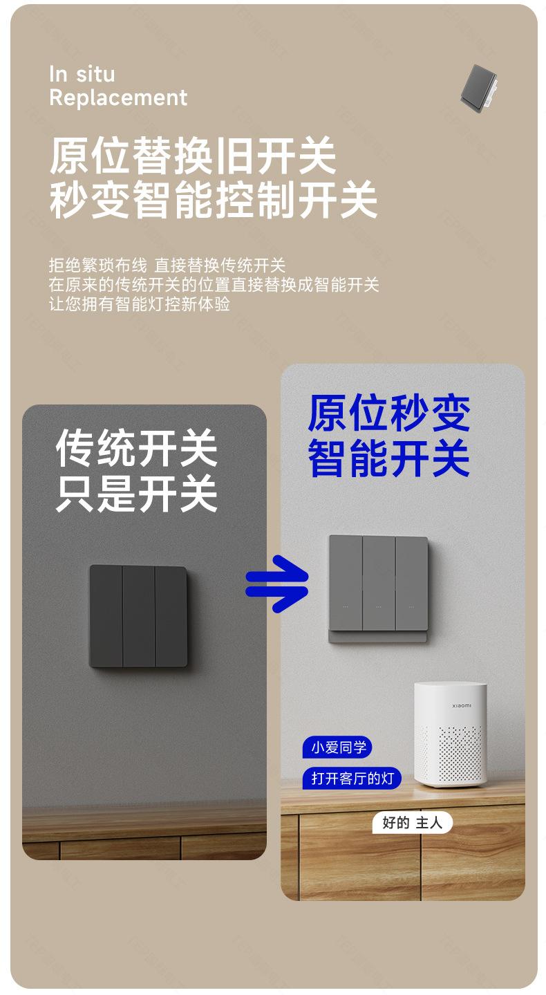 El interruptor inteligente con tacto de piel gris se ha conectado a la aplicación Mijia Bluetooth 2.0 de control dual y admite control por voz para el hogar Zero-Fire