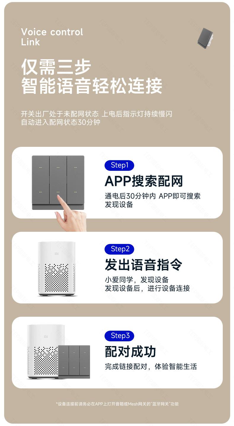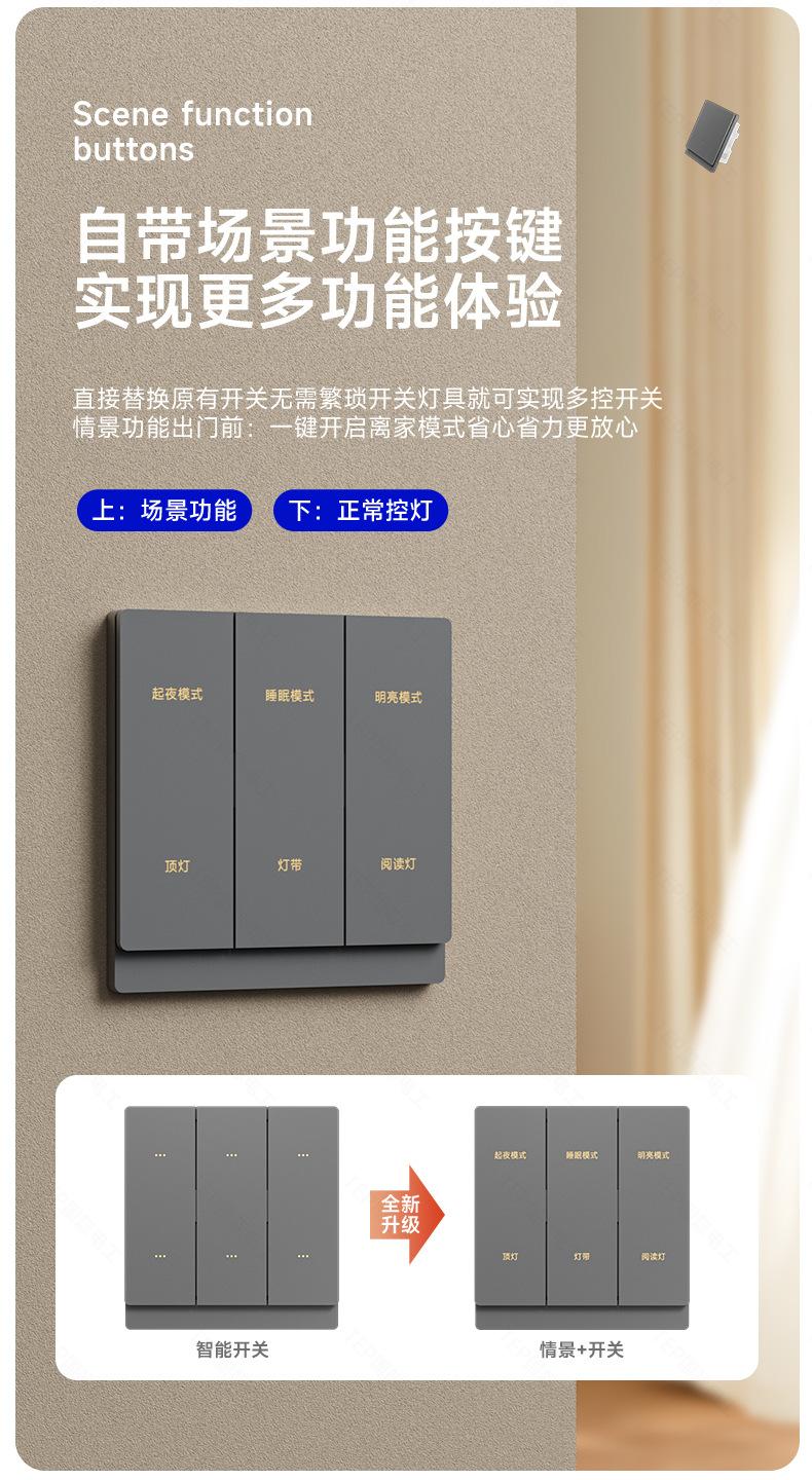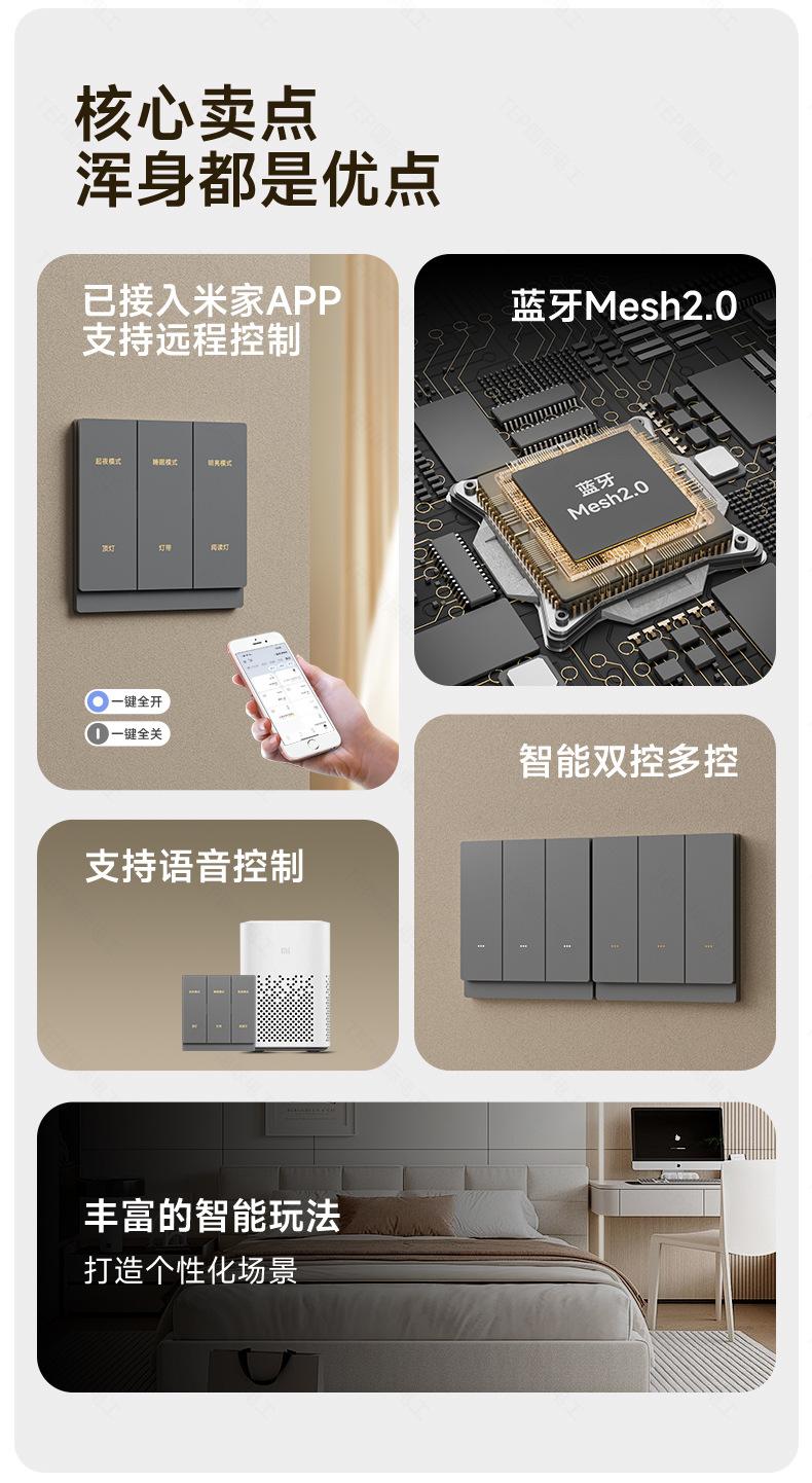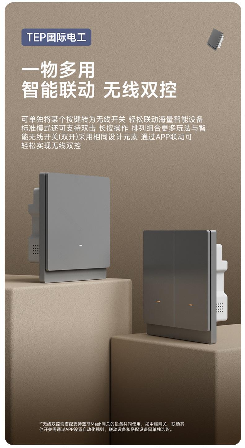 El interruptor inteligente con tacto de piel gris se ha conectado a la aplicación Mijia Bluetooth 2.0 de control dual y admite control por voz para el hogar Zero-Fire