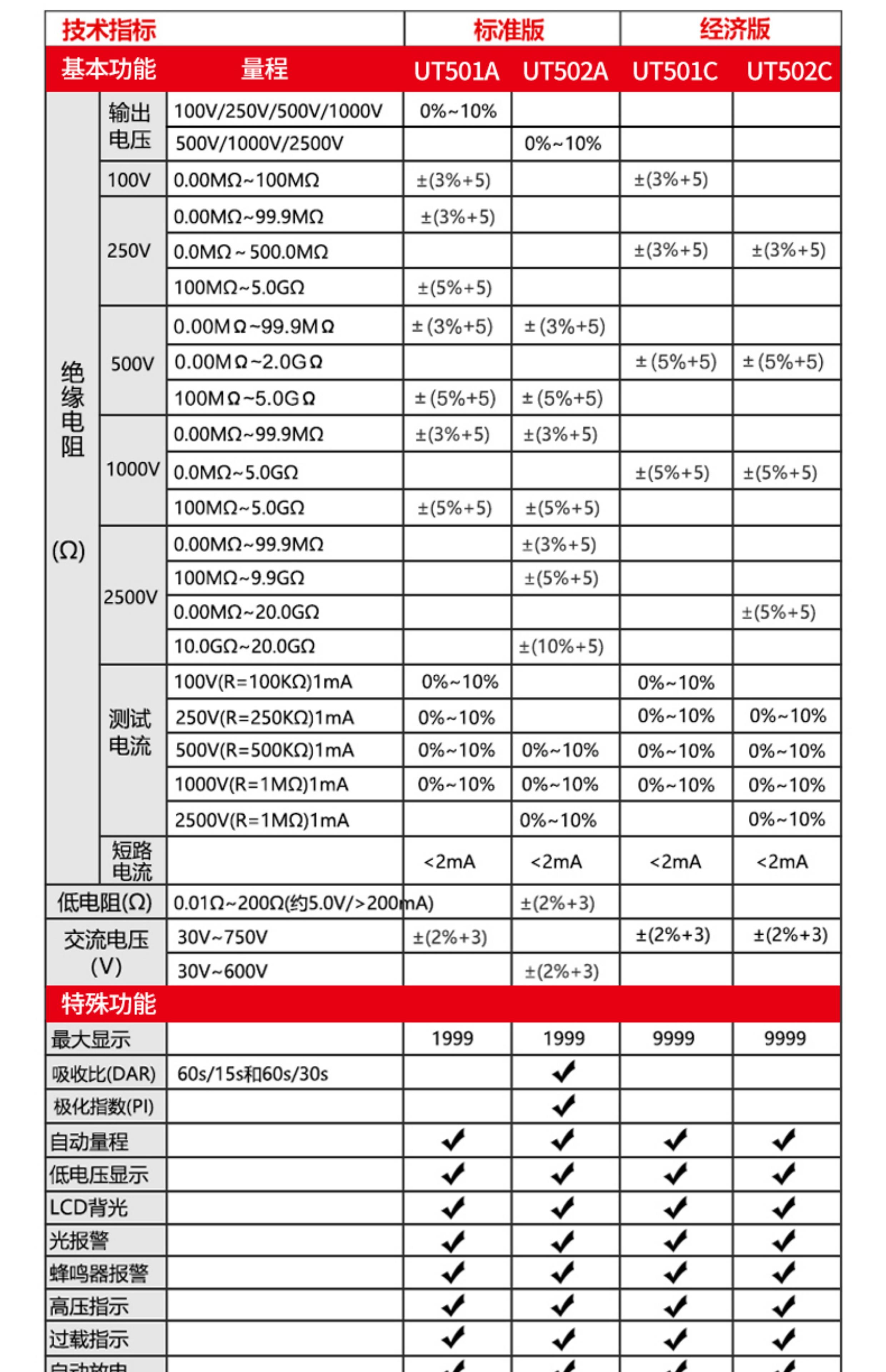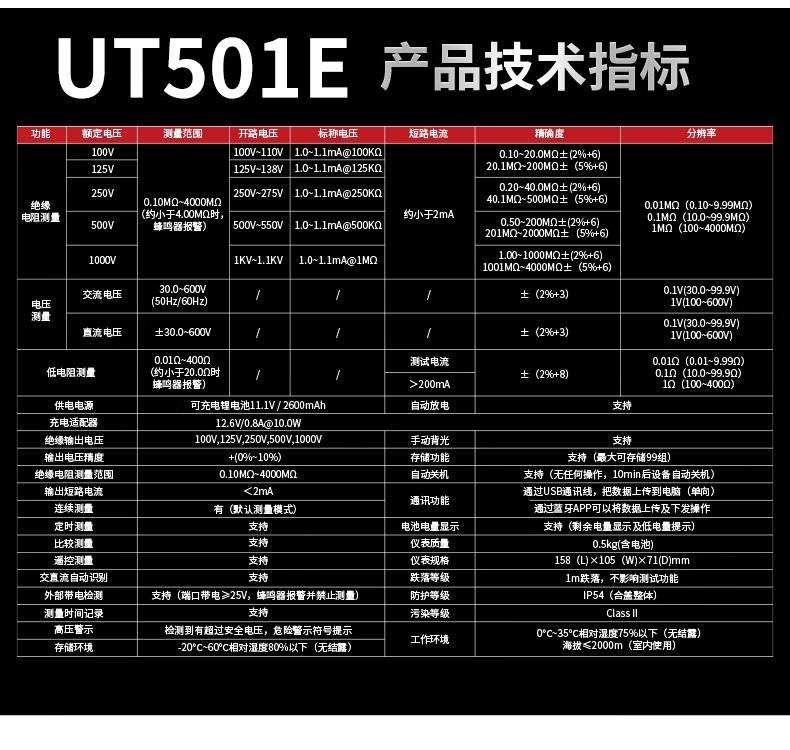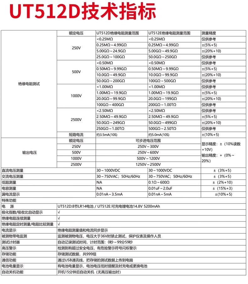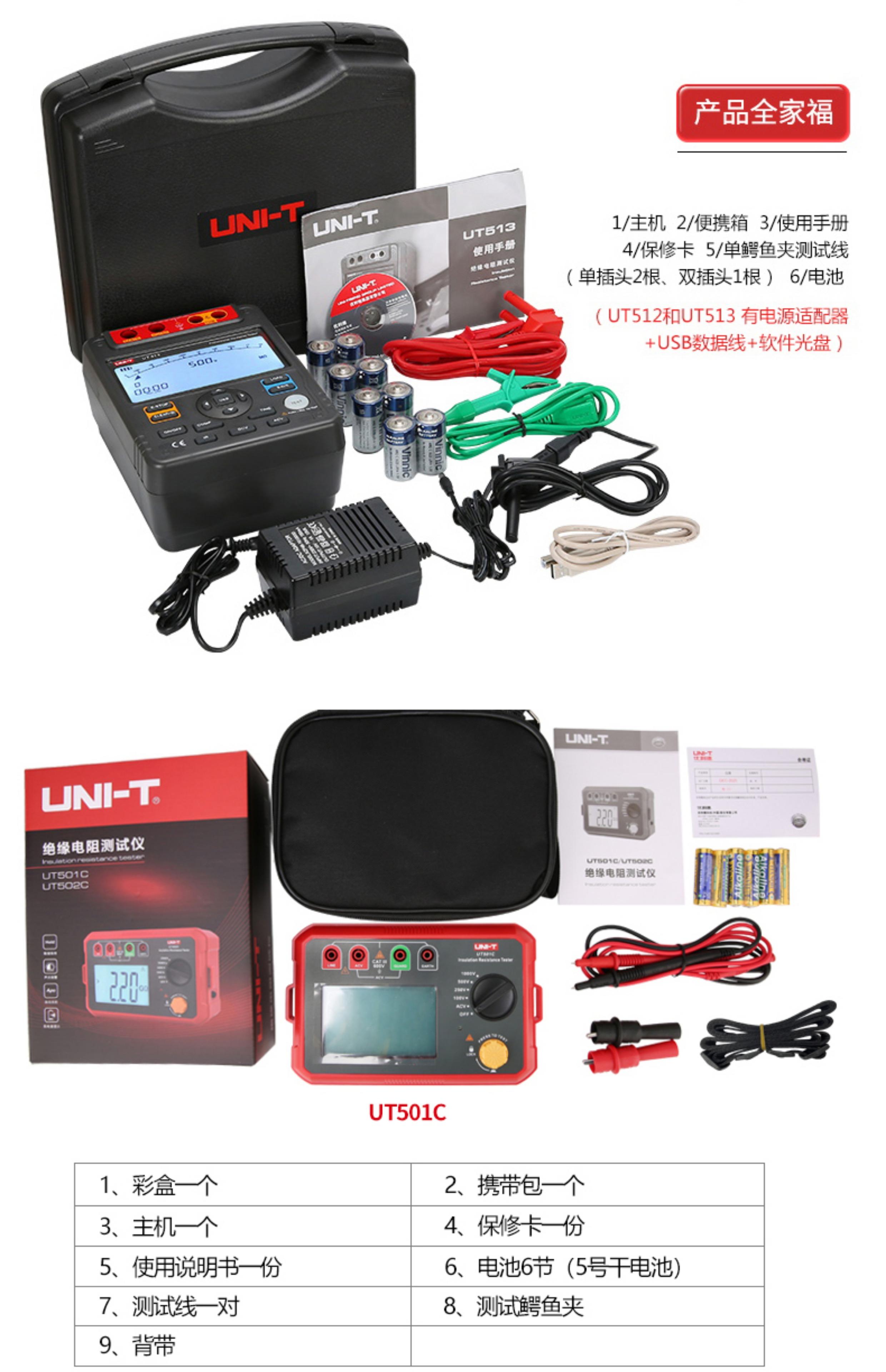 Ut501c economical version (1000v +5gω) + power adapter + free screwdriver set