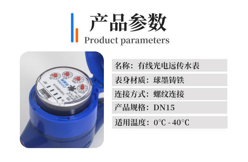 Procesamiento y Personalización de Medidor de Agua Inteligente de Transmisión Remota Fotoeléctrico Cableado Protocolo 188 2400Bps/Mbus Medidor de Agua Remoto Caliente y Fría