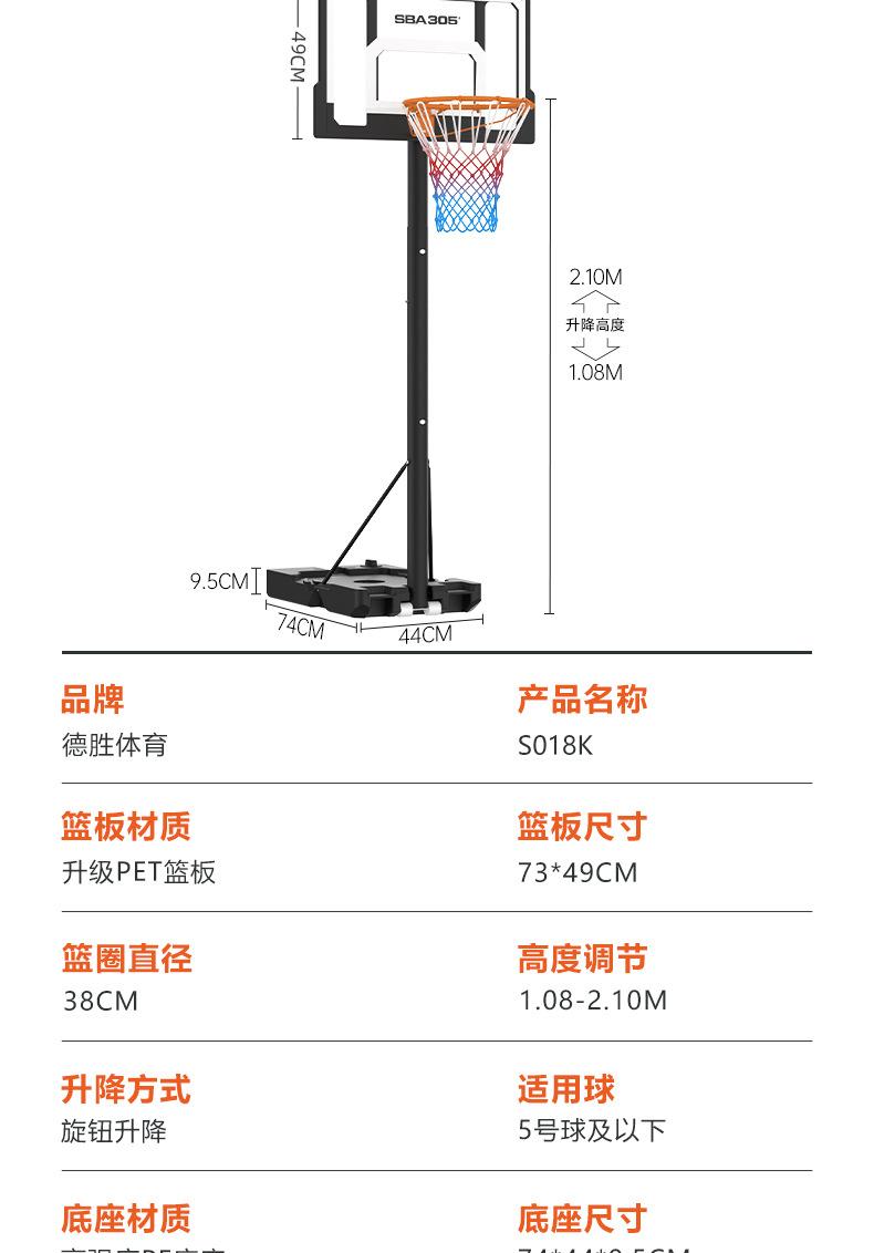 S018k children's basketball stand [height 1.2- 2.1m ]