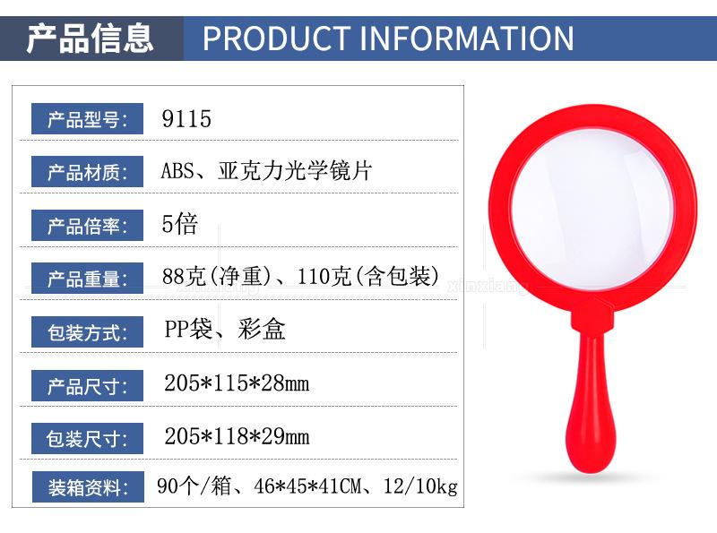 5x Lupa de Mano de Resina Plástica Anti-astillable para Niños y Estudiantes de Primaria Jardín de Niños Observación de Insectos Regalo Creativo