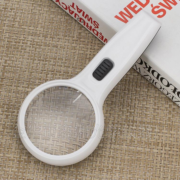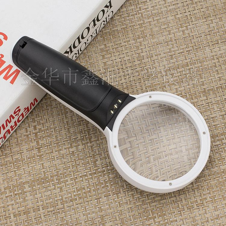 Nueva lente de resina óptica de doble capa 75mm 10 aumentos tres luces LED de mano para lectura lupa de alta potencia al por mayor